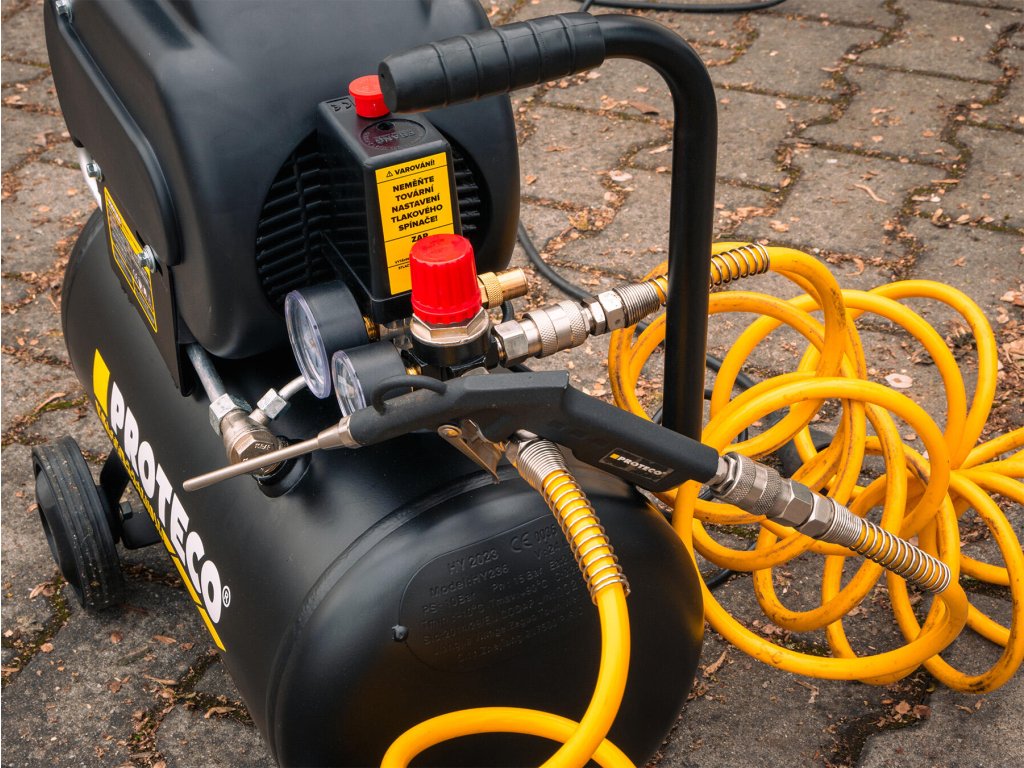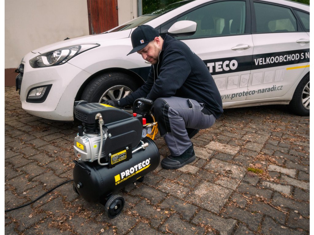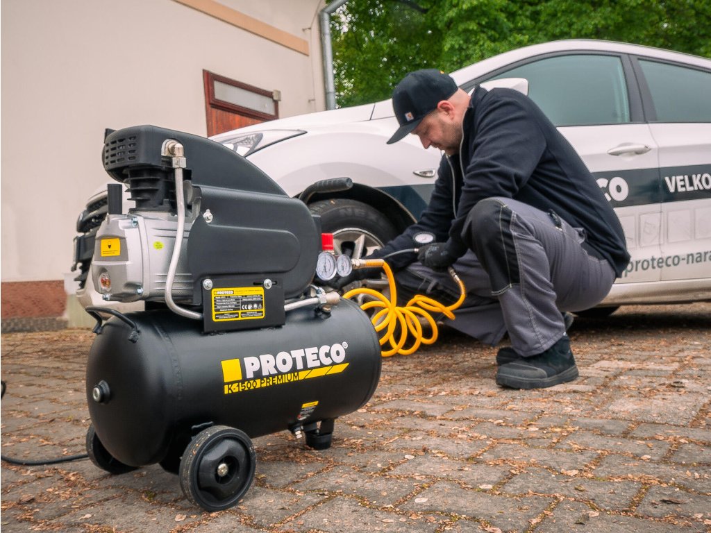 Olejový kompresor PROTECO PREMIUM 1,5 kW s objemem vzdušníku 24 L je špičkovým partnerem pro domácí a řemeslné dílny, garáže i další náročnější aplikace. Jednoválcový motor slouží k výrobě stlačeného vzduchu a následně pohonu pneumatických nástrojů a nářadí, nebo nafukování pneumatik, míčů, dětských bazénků, míčů a podobně. Kompresor má dostatečný výkon 1,5 kW (postaru 2 koňské síly) k pohonu běžného dílenského pneumatického nářadí. Celé zařízení se uvádí do chodu pomocí tlakového spínače, odlišeného od zbytku kompresoru výraznou červenou barvou. Tlakový vypínač navíc vyčistí vzduch zachycený v přívodním potrubí, když dojde k vypnutí motoru. Tím je sníženo zatížení motoru na minimum při dalším startu. Motor olejového kompresoru se automaticky zapíná a vypíná podle klesajícího a stoupacího tlaku uvnitř kovového vzdušníku. Výkonný motor Zárukou kvalitní a rychlé práce je 1,5 kW asynchronní motor olejového kompresoru. Díky hlídání objemu vzduchu ve vzdušníku je zajištěna rychlá práce a udržení stabilního tlaku v nádobě. Motor se uvede do činnosti jen v případě, že v zásobníku poklesne tlak, tím dochází k šetření motoru. Další vychytávkou je systém mazání olejem. Olej proudí v pumpě kompresoru, čímž se předchází zadření a prodlužuje se jeho životnost. Samotná kontrola hladiny oleje je díky olejoznaku velmi snadná a přehledná. Výstup vzduchu Kompresor je vybaven dvěma manometry pro tlak ve vzdušníku a výstupní tlak. Pro připojení tlakové hadice slouží dvě rychlospojky DN 7,2. Oba výstupy jsou regulovány pomocí regulátoru výstupního tlaku. To zajišťuje optimální tlak například při lakování. Mnoho využití K běžným činnostem, jako je ofukování anebo naopak huštění, je olejový kompresor výborným pomocníkem. Svou práci zastane i při složitějších činnostech. Za asistence vzdušníku o objemu 24 l a výkonného motoru zajišťuje stálý tlak, zvládne práci s pneumatickým utahovákem, sponkovačkou, nastřelovačkou a dalšími základními pneumatickými nástroji. Vestavěný manometr vám umožní rychlý přehled o tlaku v nádobě. Lehce přemístitelný Svého spolehlivého a výkonného parťáka můžete lehce přemisťovat po dílně, či garáži a umístit ho přesně tam, kde bude potřeba. Kromě kompaktních rozměrů a hmotnosti 25 kg, budou nápomocná velká plastová kolečka a kovová, ergonomická rukojeť. Charakteristické znaky a výhody: - 1,5 kW (2 HP) asynchronní motor - Pracovní napětí 230 V / 50 Hz - Vzdušník o objemu 24 L - Pracovní tlak 8 barů - Sací výkon 195 l/min - Olejová náplň: ISO VG 100 - Kolečka a ergonomické madlo - Hmotnost 25 kgPři platbě penězi je možné dostat zajímavou nabídku neboli akční cenu a tu Vám rádi uděláme když napíšete na info@megabike-cyklo.cz