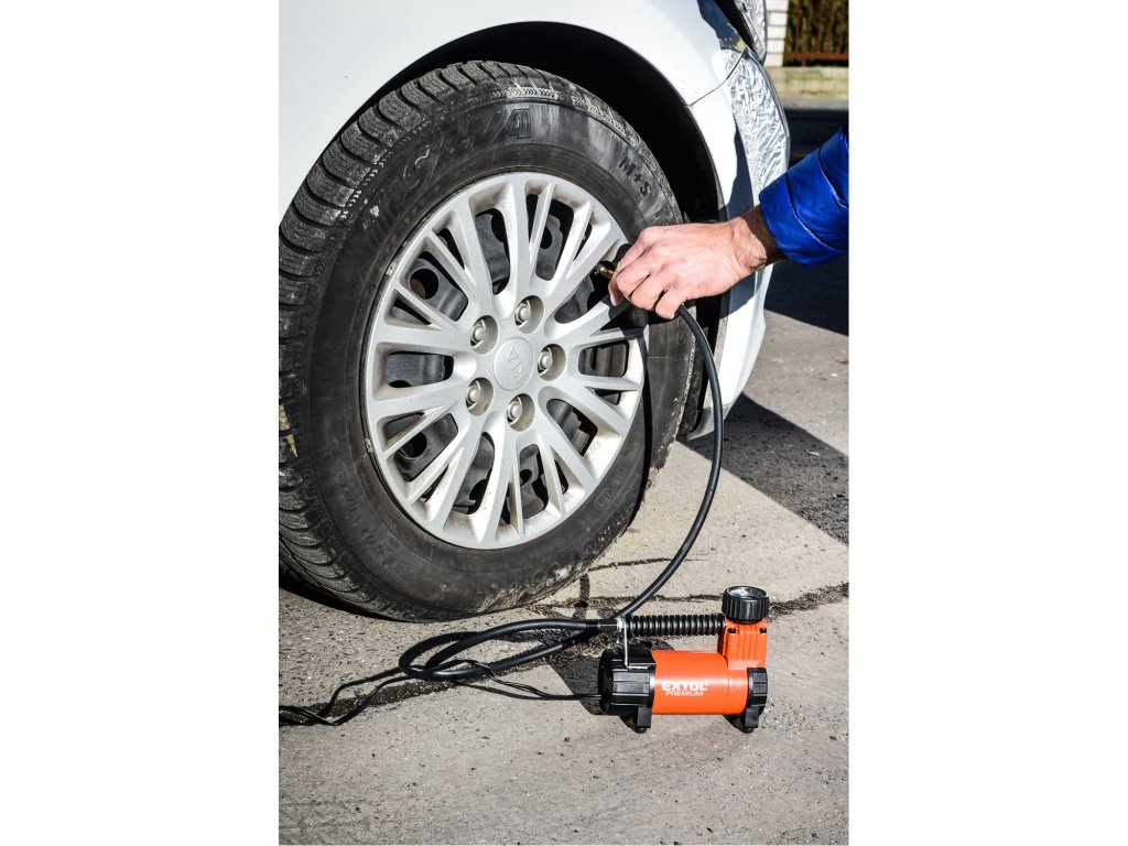 Auto kompresor je určen k plnění a přifukování pneumatik kol, motocyklů, osobních, užitkových a nákladních automobilů (vzhledem k délce napájecího kabelu a vzduchové hadice daného modelu), dále sportovních a cvičebních balónů, nafukovacích matrací a lehátek, gumových člunů atd., což jej činí užitečnou součástí výbavy automobilu také pro relaxační a zábavní pobyty.- celokovové tělo kompresoru a chladiče s plastovými nožkami