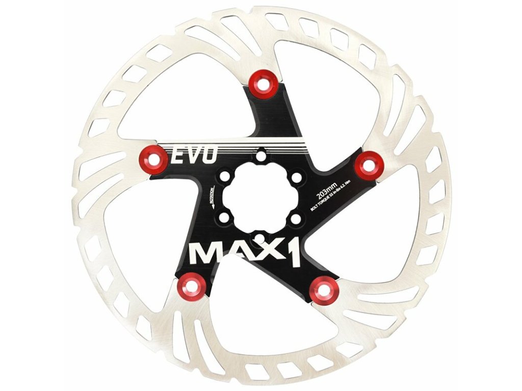 Brzdový kotouč MAX1 Evo 203mm s Alu unašečem.Kotouč je vyroben z vysoce tepelně odolné oceli 410 STAINLESS STEEL, unašeč z AL7075.