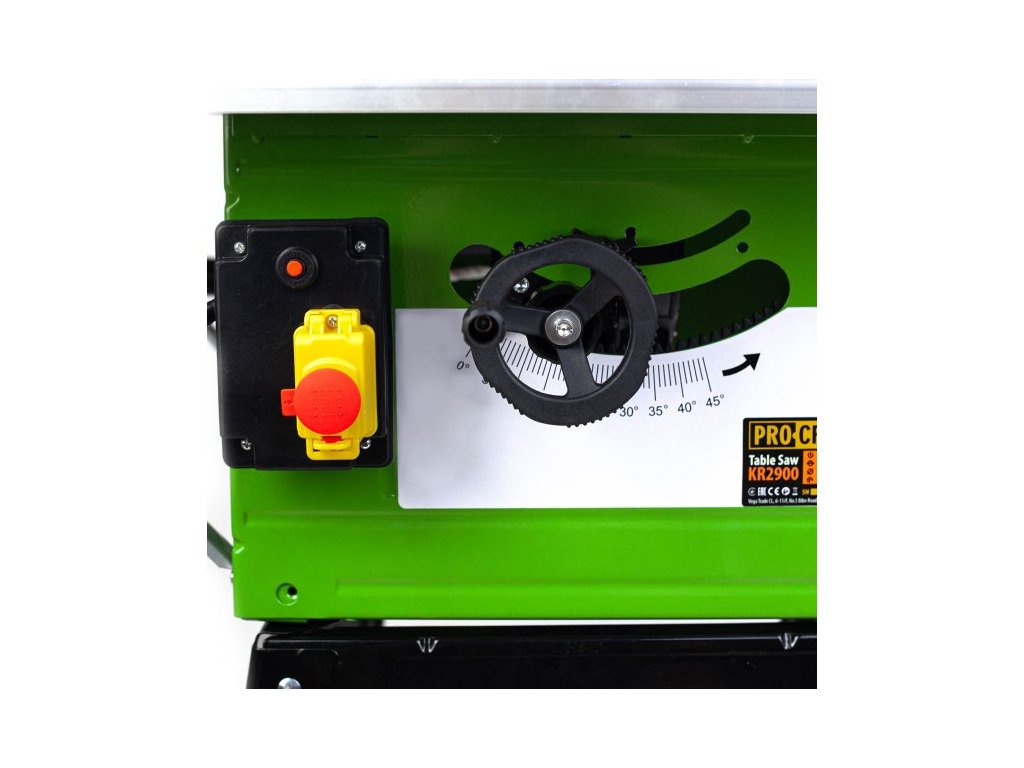 Stolová pila Procraft KR2900 je určena k řezání měkkého i tvrdého dřeva. lamina a kostrukčních desek. Uhlíkový motor s příkonem 1800W a vysokých otáček 4500 zaručuje vysoký řezný výkon. Regulace hloubky a úhlu řezu umožňuje nastavení optimálních parametrů při práci s různými materiály. Úhlové pravítko, příčný a podélný dorazy umožňuje vysokou přesnost řezání. Možnost připojení vysavače přes hadici zaručí čisté pracovní prostředí. Plechové šasy a stabilní kovový stojan zaručí přesné řezání. Nízká hmotnost 7,5kg a kompaktní rozměry usnadňuje manipulace. Součástí dodávky je inbusový a maticový klíč, pilový kotouč 254mm a montážní klíč. Balení karton.