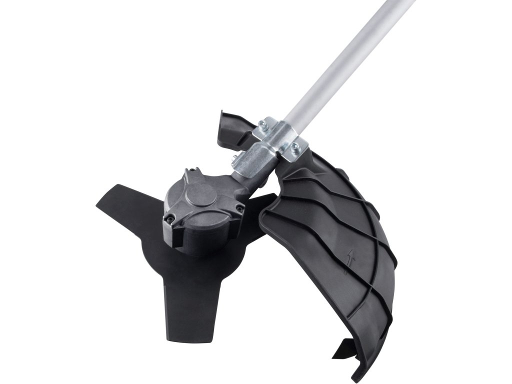 Silný aku křovinořez určený k sekání vysoké trávy nebo suché trávy, vysokých kopřiv a keřů a podrostu s průměrem kmene až 4cm s pomocí ocelového žacího nože nebo k sekání nižší trávy pomocí žací struny. Pro snadnou manipulaci při sekání má křovinořez ergonomicky tvarované rukojeti ve tvaru cyklořídítek a ramenní popruh, který přenáší většinu hmotnosti na tělo a ruce používáte jen pro jemnou manipulaci při sekání. Křovinořez je poháněn nejmodernějším „brushless” motorem. Tento nový typ motoru má vyšší životnost, je výkonnější a má menší spotřebu el. energie než klasické motory s uhlíkovými kartáči. Díky malé velikosti a při zachování vysokého výkonu je možné motor umístit do hlavy sekačky a díky tomu je v dlouhé tyči sekačky jen kabel, což umožňuje výrazně snížit vibrace a zvýšit efektivitu motoru. Do stroje se vkládají dvě baterie SHARE20V, které společně umožňují motoru mít vysoký výkon i při zatížení. Při použití žací struny ji lze při práci prodloužit poklepem na zem. Na rukojeti je snadno přístupné tlačítko pro zapnutí a regulaci otáček ve 3 stupních: 3800/5000/6700 otáček/min. Dále jsou tam umístněné bezpečnostní tlačítka zabraňující náhodnému spuštění stroje při manipulaci. Pro snadnou přepravu lze křovinořez jednoduše “rozpůlit” bez nástroje pomocí jednoho šroubu. Pro běžnou práci dostačují dva 2Ah akumulátory, oba dva můžete najednou rychle nabít v rychlonabíječce za 35min, pro náročnější nebo delší práci doporučujeme větší akumulátory s kapacitou 4–8Ah. Akumulátory lze použít ve všech typech nářadí řady EXTOL SHARE20V. Díky použité Li-ion technologii je ho možné kdykoliv dobíjet, aniž by se tím snižovala jeho kapacita. Li-ion akumulátor ztrácí energii vlivem samovybíjení velmi pomalu a vydrží dlouho nabitý a připravený k použití.- vysoký výkon