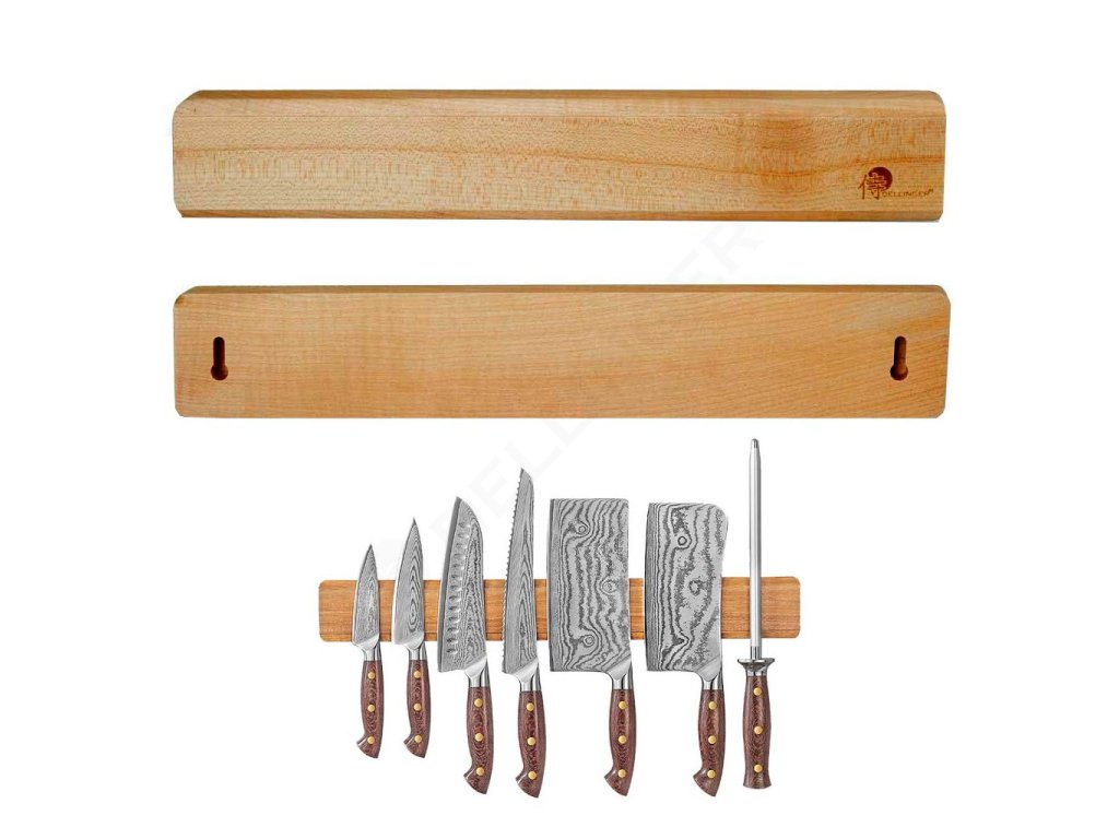 Stylová magnetická lišta na nože Dellinger z akáciového dřeva je praktickým a zároveň elegantním doplňkem každé kuchyně. Díky silným magnetům udrží nože bezpečně na místě, zatímco její dřevěný povrch dodá interiéru přírodní a luxusní vzhled.
