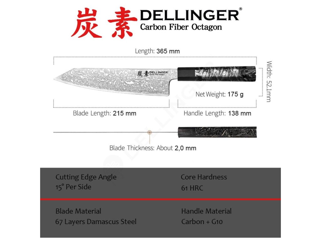 Nůž Dellinger Chef/Kiritsuke 215 mm Carbon Fiber Octagon® Nevíte kde uplatnit Benefity obecně, zeptej se info@megabike-cyklo.cz