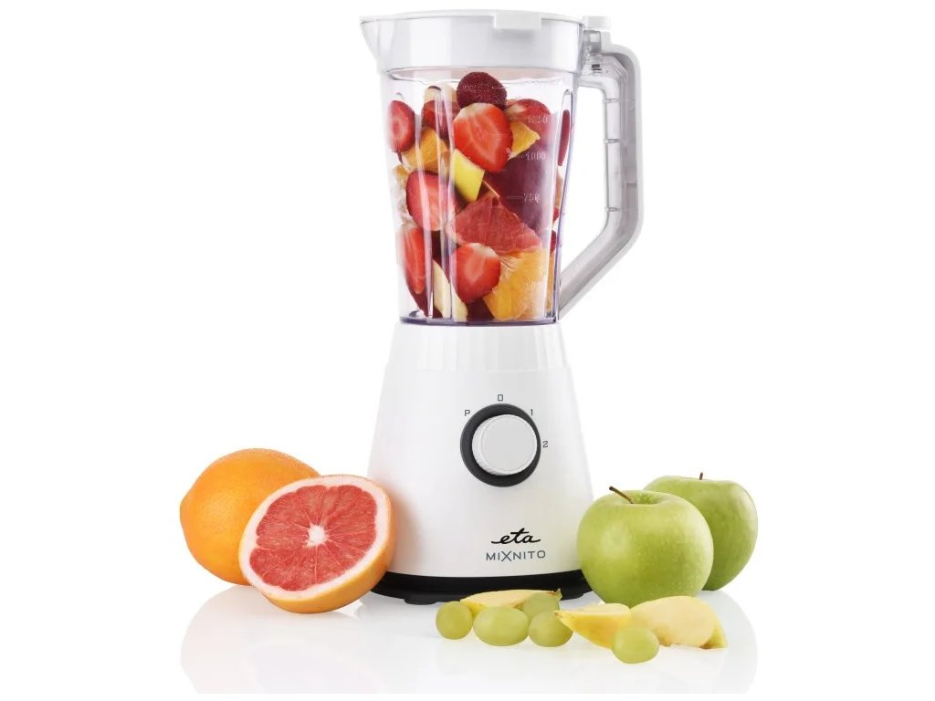 Stolní mixér ETA Mixnito je vše, co potřebujete pro přípravu nejlepších smoothie, koktejlů, omáček a krémových polévek. Mixuje studené i horkéJeho elegantní design zaručuje, že se stane skvělým doplňkem každé kuchyně. Díky plastové nádobě s objemem 1,5 l, která neabsorbuje vůni, chuť ani barvu potravin, je tento mixér ideální pro zpracování jakýchkoli surovin. A to i těch horkých až do teploty 80°C. Dva rychlostní stupně a funkce PULSE pro maximální otáčky zaručují, že si mixér ETA Mixnito poradí s ovocem na koktejly a smoothie i zeleninou na krémové omáčky a polévky. A to vše snadno a rychle. O kvalitu mixování se postarají kvalitní nerezové mixovací nože.Bezpečnost je pro nás prioritouBezpečnost je u nás na prvním místě, a proto je mixér ETA Mixnito vybaven bezpečnostní pojistkou proti špatnému sestavení nádoby i víka. Obsah mixéru zůstane tam, kde má a nemusíte tak mít obavy z omáčky na stropě. Díky praktickému otvoru ve víku můžete suroviny přidávat i za chodu, snadno a bezpečně. Stabilitu na kuchyňské lince pak zajišťují protiskluzové nožky.Doplňkové parametry