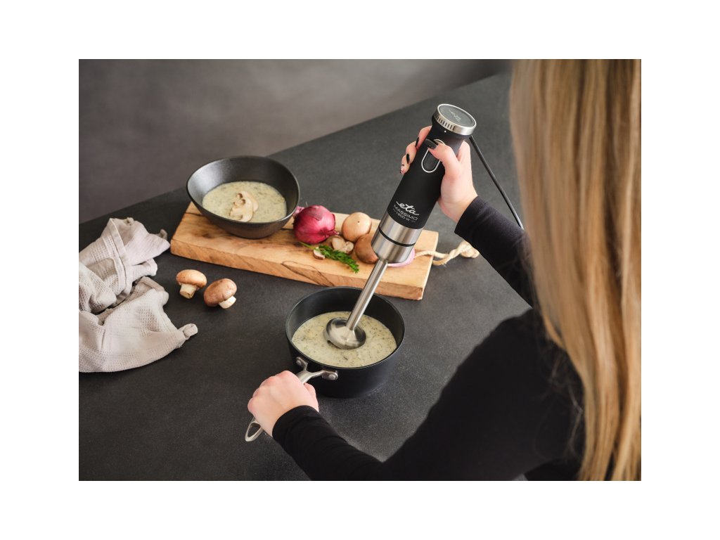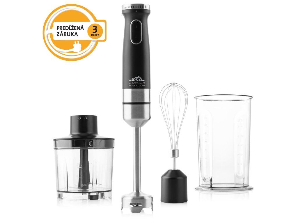Výkonný tyčový mixér s DC motorem s příkonem 1200 W v nerezovém provedení a bohatým příslušenstvímMultifunkční tyčový mixér ETA Massimo by neměl chybět v žádné moderní kuchyni. Vyniká nejen v mixování, ale připraví i krémové omáčky, polévky, dipy, smoothie a poradí si i se šleháním sněhu.