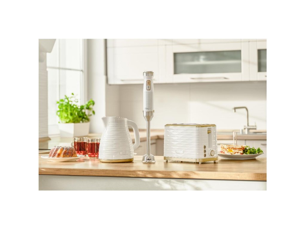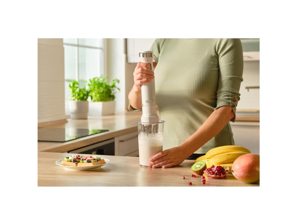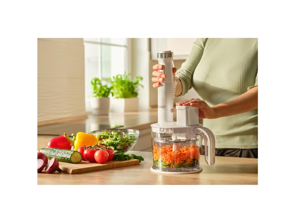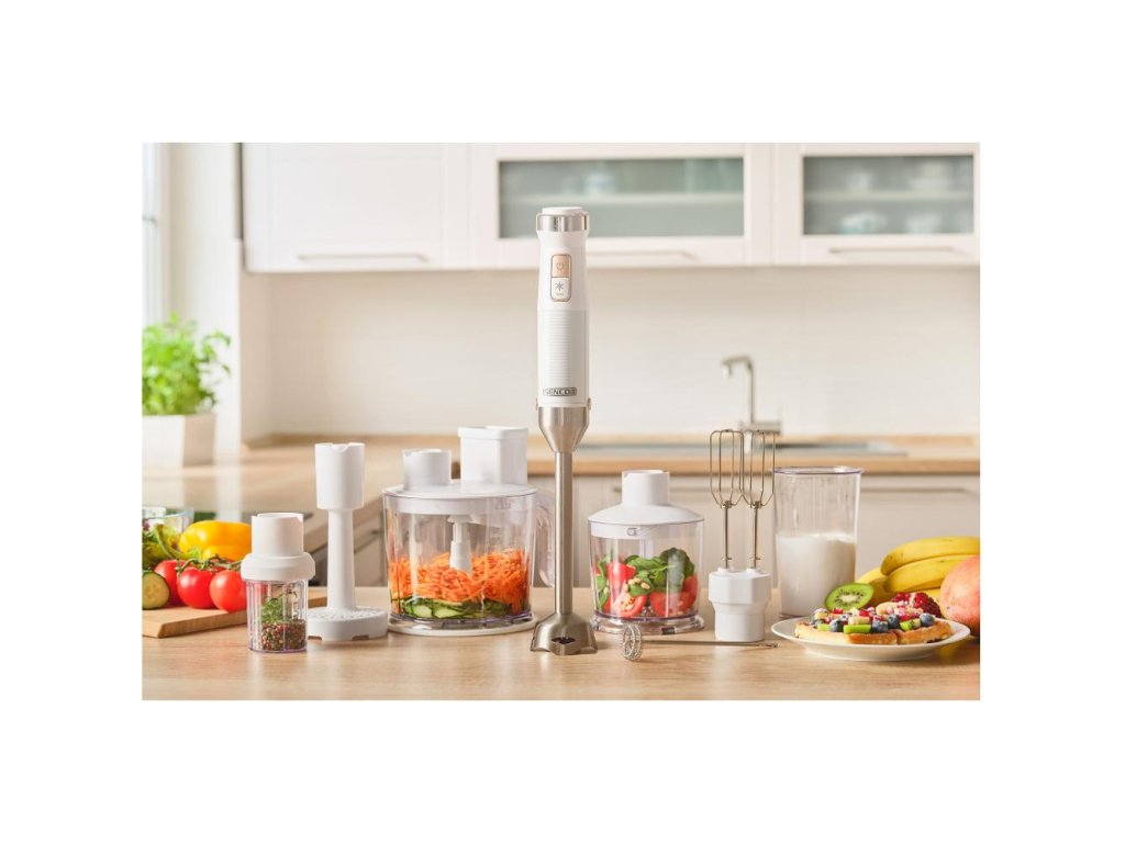 Tento ponorný mixér se stane nejlepším pomocníkem ve vaší kuchyni. S jeho rozsáhlou výbavou zvládnete připravit jakkoliv náročné jídlo od předkrmu až po dezert. Rozhodně oceníte technologii Titanum QuadBlade. Jejím úkolem je udržet vitamíny a minerály v potravinách. Ergonomicky tvarovaná rukojeť zajistí pohodlnou přípravu jídel a s tlačítkem turbo bude nedělní oběd připravený raz dva.LED kontrolka na mixéru signalizuje zapnutí a vypnutí. Pro snadnější manipulaci je také vybaven otočnou koncovkou o 360° na síťovém kabelu. Jestliže se začne motor přehřívat, přístroj se automaticky vypne.¨