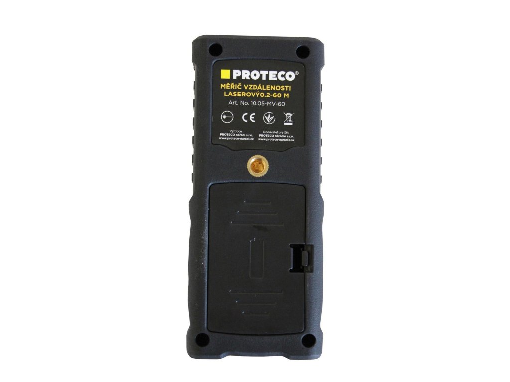S laserovým dálkoměrem PROTECO rychle a precizně změříte požadovanou délku do vzdálenosti až 60 m. Laserový dálkoměr PROTECO umožňuje výpočty plochy, objemu, měření pomocí Pythagorovy věty, horizontální i vertikální vodováha. Laserový dálkoměr měří v rozsahu 0,2 - 60 m s přesností ± 2 mm a disponuje skvěle čitelným displejem, jednoduchým ovládáním a vysokou odolností proti špatným povětrnostním podmínkám. Zařízení umožňuje uložení 20 výsledků měření. Laserový dálkoměr je napájen 2× 1,5 V AA bateriemi. Nabízí pohodlné měření vzdálenosti bez nutnosti použití metru nebo pásma. Výhody a charakteristické znaky - Laserový dálkoměr pro rychlé a přesně měření vzdálenosti - Měří na vzdálenost až 60 cm a spřeností ± 2 mm - Dobře čitelný displey a jednoduché ovládání - Možnost uložení až 20 posledních měření - Napájení pomocí baterií 2 x 1,5V AA - Umožňuje výpočty plochy, objemu, měření pomocí Pythagorovy věty - Rozměry 125 x 53 x 26 mmPři platbě penězi je možné dostat zajímavou nabídku neboli akční cenu a tu Vám rádi uděláme když napíšete na info@megabike-cyklo.cz