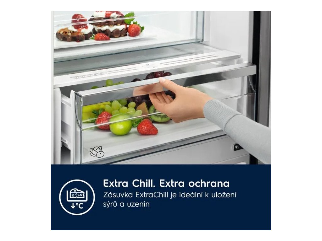 Chraňte kvalitu, chuť a čerstvost uzenin, ryb a sýrů v zásuvce Extra Chill. Zásuvka udržuje nižší teplotu než zbytek lednice s aktivní cirkulací studeného vzduchu.