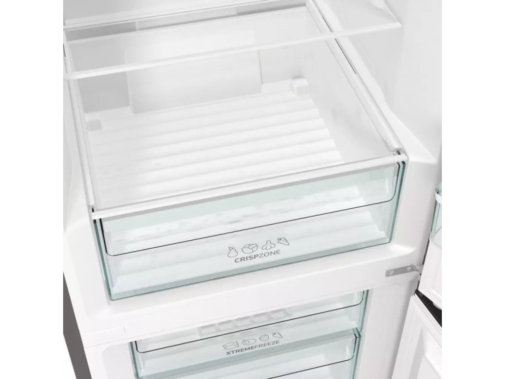 Volně stojící kombinovaná chladnička Gorenje NRC61CSXL4 si poradí s chlazením i mrazením potravin. Spotřebič v designu kartáčované nerezové oceli nabízí celkovou kapacitu až 326 litrů.Otevírání dveří je nastaveno na pravou stranu, v případě potřeby je ale možné změnit umístění pantů a tedy i otevírání. Uchopením zapuštěného madla a jemným zatažením chladničku otevřete.
