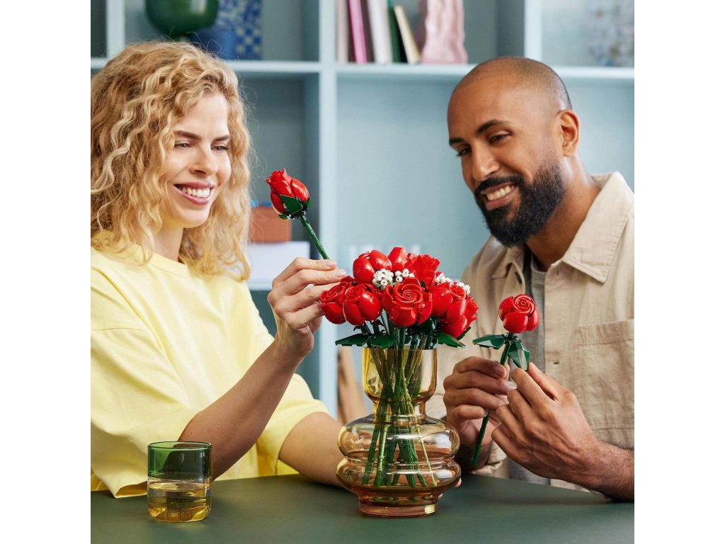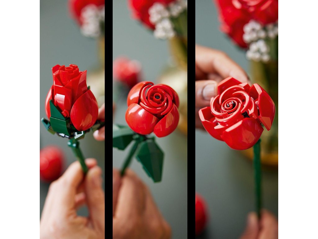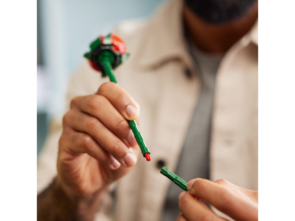 Odpočiňte si se stavebnicí pro dospělé LEGO® Icons (10328) Kytice růží. Užijte si obohacující stavitelský projekt nebo nadčasovou kytici z kostek darujte svým blízkým – skvěle se hodí jako dárek k Valentýnu nebo jakékoli jiné výjimečné příležitosti.Radost ze stavění! Tato kytice z kostek LEGO obsahuje celkem 12 růží s dlouhými stonky, včetně 4 plně rozkvetlých růží, 4 růží v rozkvětu a 4 poupat, které se perfektně hodí k vystavení ve váze, a 4 větviček nevěstina závoje s malými bílými kvítky. Kytice je snadno sestavitelná a je elegantním doplňkem každého prostoru – navíc ji lze kombinovat s dalšími stavebnicemi z botanické kolekce LEGO.
