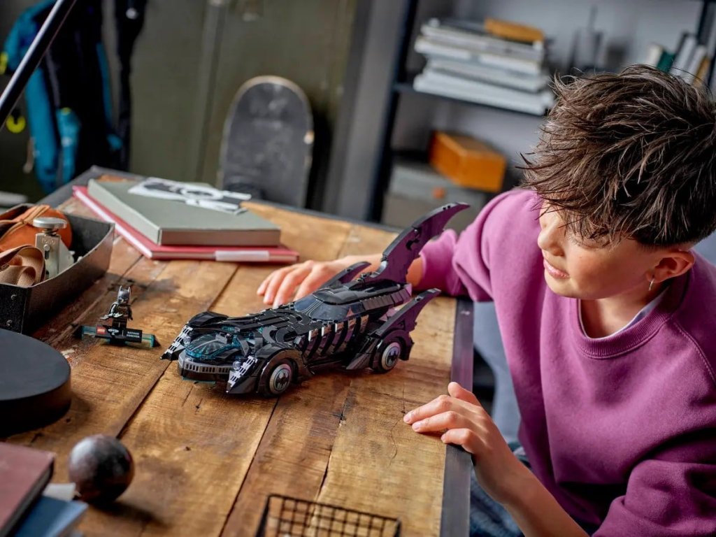 Tato autentická replika kultovního vozu z filmu Batman navždy obsahuje tvarované čelní sklo, pohyblivá kola, dekorace a otevírací kokpit, který odhaluje propracovaný interiér. Součástí vozidla je také minifigurka Batmana s vlastním speciálním podstavcem.