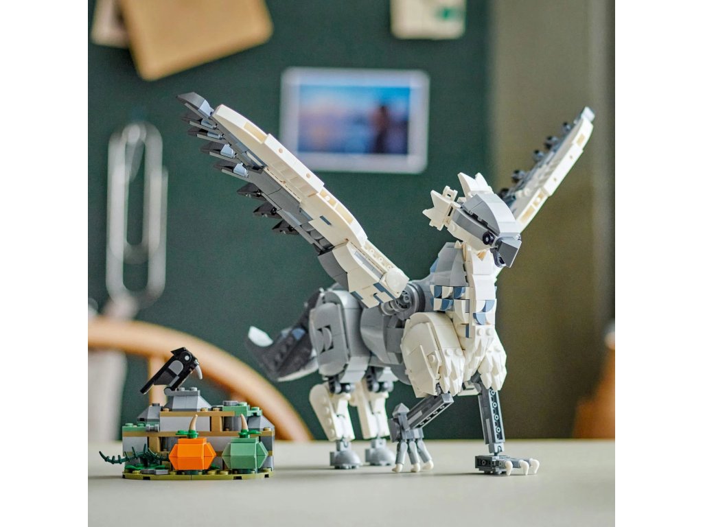LEGO® Harry Potter™ 76427 KlofanModel hipogryfa klofana skvěle ozdobí tvůj pokojíček. Hodí se však nejen na výstavku, ale také na hraní. Můžeš mu sklopit hlavu, rozložit křídla a napolohovat nohy na chůzi, sezení nebo do typického úklonu.
