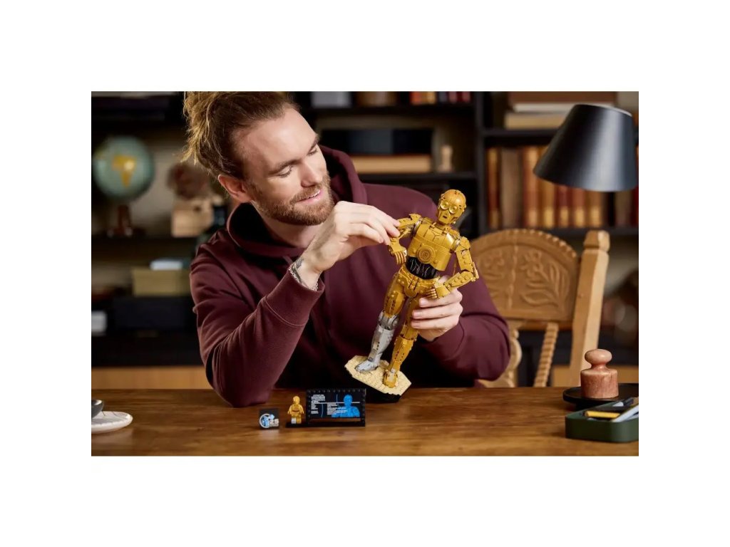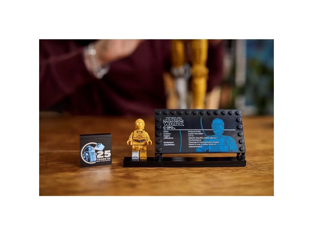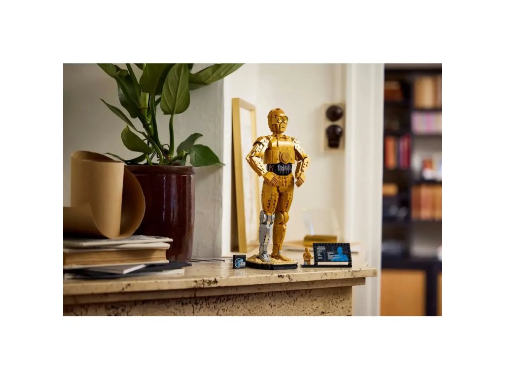 Postavte a vystavte si tuto propracovanou sestavitelnou figurku droida LEGO® Star Wars™ C-3PO. Tato sběratelská stavebnice představuje skvělý tip na nostalgický na dárek pro dospělé a fanoušky klasické ságy Star Wars a nabízí pohlcující a obohacující kreativní výzvu. Poskládejte si každý detail oblíbené postavy ze světa Star Wars a otáčejte její hlavou nebo pohybujte rukama a vytvořte známé pózy. Tato stavebnice LEGO Star Wars pro dospělé obsahuje také stojan s informační cedulkou C-3PO a prostor pro minifigurku LEGO C-3PO, která je součástí balení, a navíc nepřehlédnutelnou kostku k 25. výročí LEGO Star Wars. Posuňte tuto dekoraci na další úroveň a vystavte svůj výtvor vedle stavebnice LEGO Star Wars R2-D2™ (stavebnice 75379, prodává sesamostatně) a jednoduše napolohujte jednu z paží C-3PO tak, aby hladila svého starého známého přítele po hlavě. Užijte si intuitivní stavění s aplikací LEGO Builder, která vám umožní přibližovat a otáčet model ve 3D, sledovat postup a ukládat všechny s tavebnice na jednom místě.Doplňkové parametry
