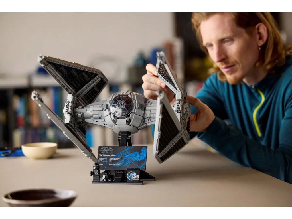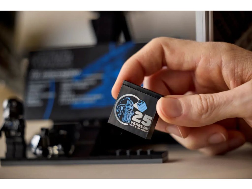 Stvořeno na výstavku – Umístěte Stíhačku TIE na podstavec na vystavení z kostek, který má navíc informační cedulku, kostku k 25. výročí LEGO® Star Wars™ a místo pro pilota stíhačky TIE a myšího droida