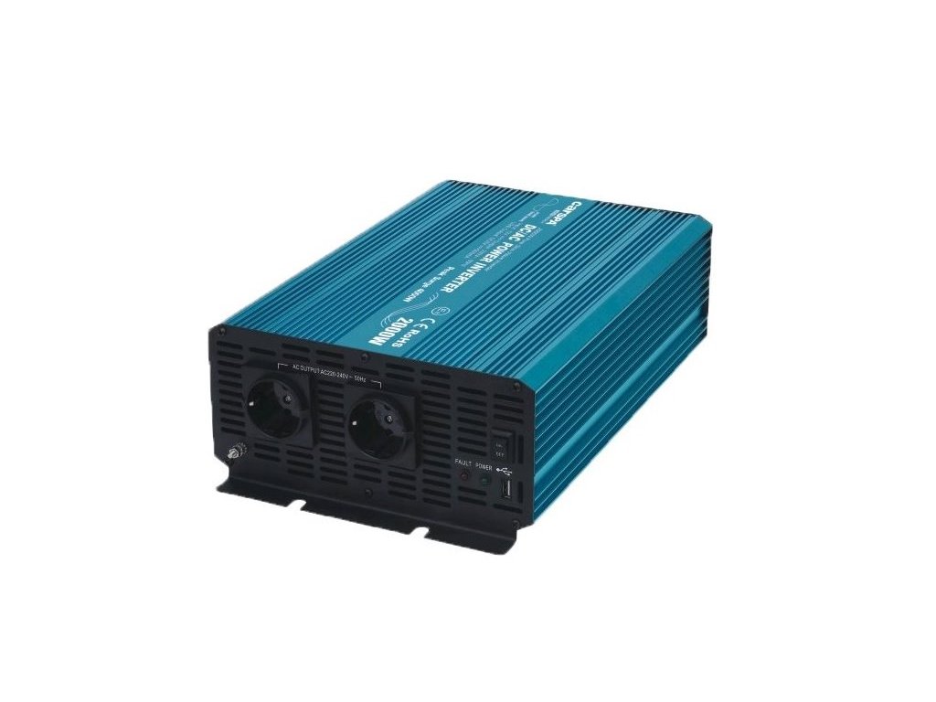 Napěťový měnič Carspa P2000U-12 nabízí vynikající kvalitu a skutečný sinusový výstup pro provoz vašeho elektrického nářadí a jiných citlivých zatížení.Měnič je odolný proti rázovému proudu a je schopný spustit i těžké zátěže, jako jsou například televizory, motory, apod. Je opatřen ochranou proti přepólování, zkratu, přetížení, přepětí, teplotní ochranou, atd.