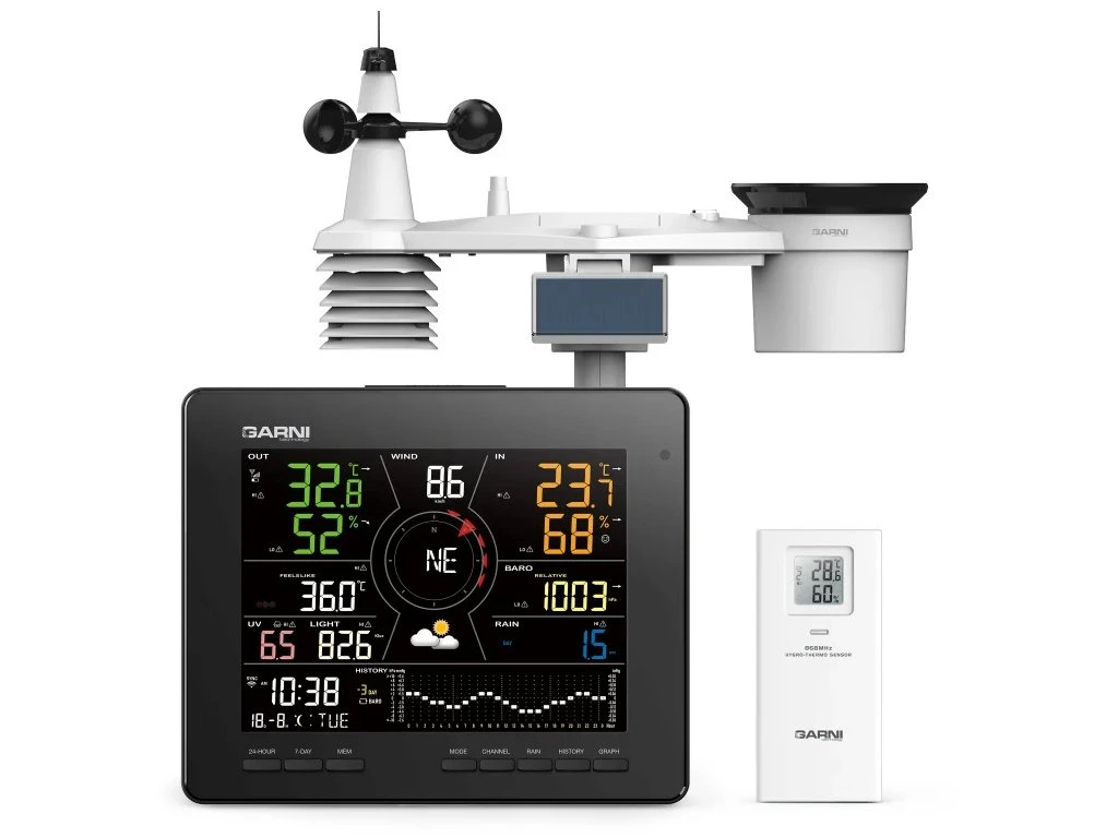 Integrované bezdrátové čidlo 7-v-1 GARNI 1NG měří vnější teplotu a relativní vlhkost, rychlost a směr větru, dešťové srážky, UV index a sluneční záření a data jsou odesílána do hlavní jednotky až do vzdálenosti 150 m (v otevřeném prostoru). Napájení zajišťuje vestavěný kapacitor, který je nabíjen pomocí vestavěného solárního panelu. Baterie slouží jako záložní zdroj. Čidla jsou kompletně smontovaná a kalibrovaná tak, aby pro vás byla instalace co nejjednodušší.