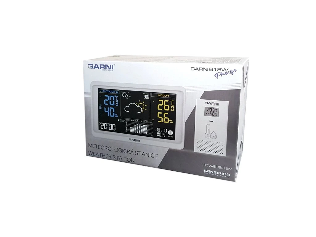 1 x hlavní jednotka GARNI 618W Precise 1 x bezdrátové čidlo GARNI 063H 1 x síťový adaptér český, slovenský, anglický, německý, nizozemský, polský a maďarský návod