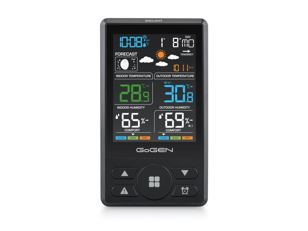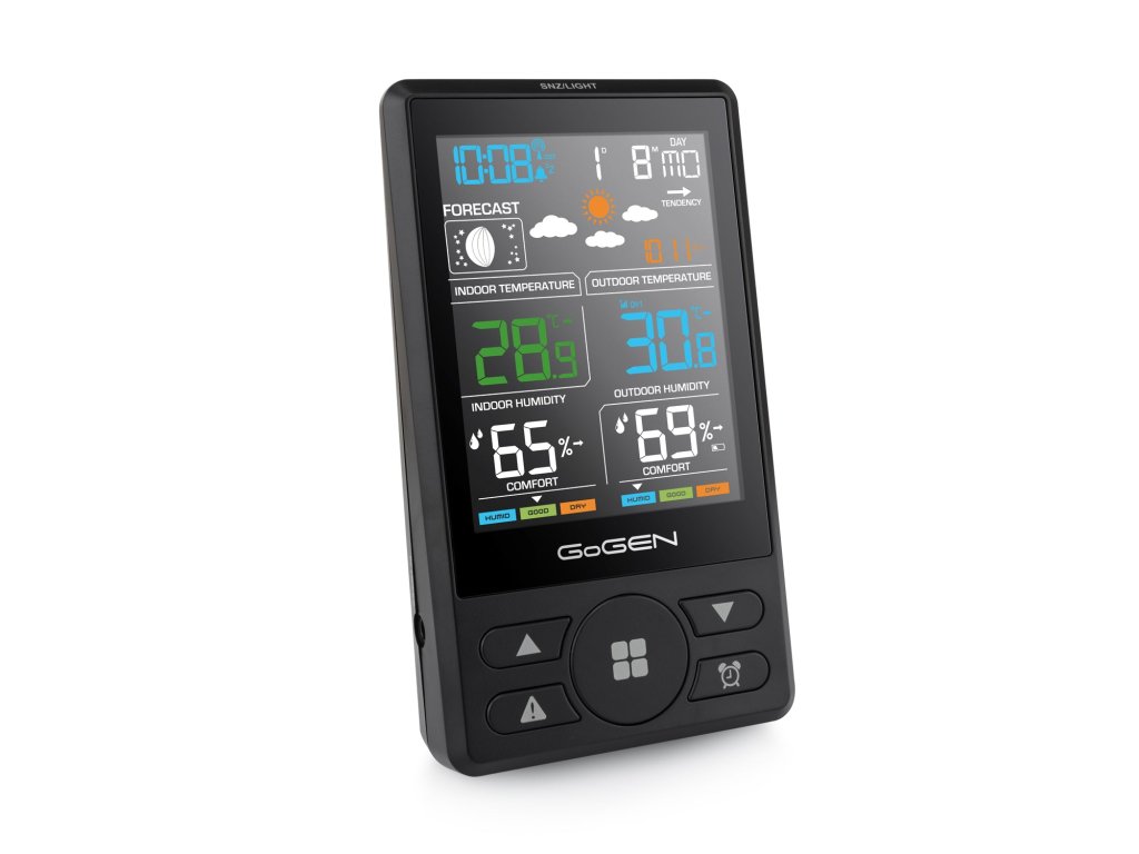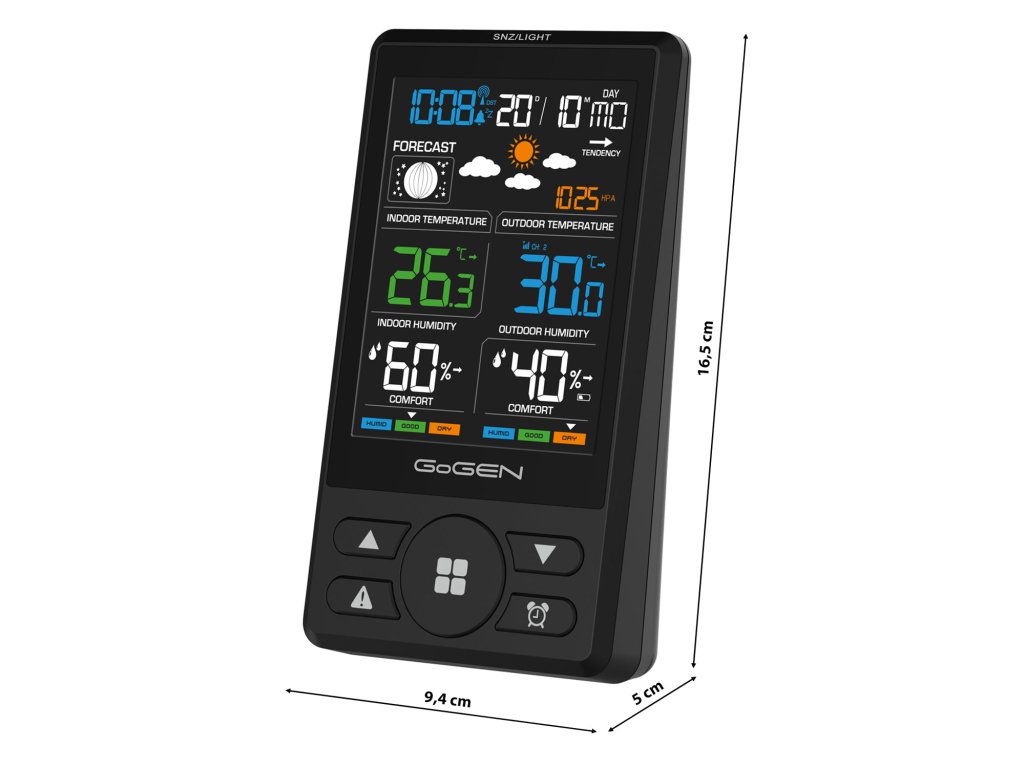 S meteostanicí GoGEN ME 1250 budete mít neustálý přehled o počasí i vnitřním prostředí vaší domácnosti. Zobrazuje animovanou předpověď, vnitřní a venkovní teplotu a vlhkost, barometrický tlak i fáze Měsíce. Displej přehledně ukazuje minimální a maximální hodnoty, a navíc umožňuje nastavení upozornění na vybrané teplotní hodnoty. Připojit lze až tři externí senzory, takže sledujete klima i na více místech. Čas je řízen rádiovým signálem DCF 77 a nechybí ani praktický budík s kalendářem.