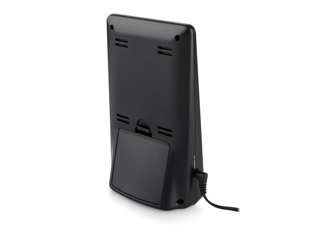 Napájení hlavní jednotky je řešeno síťovým adaptérem, zatímco tři AAA baterie slouží jako záložní zdroj při výpadku proudu pro zachování nastavení meteostanice.