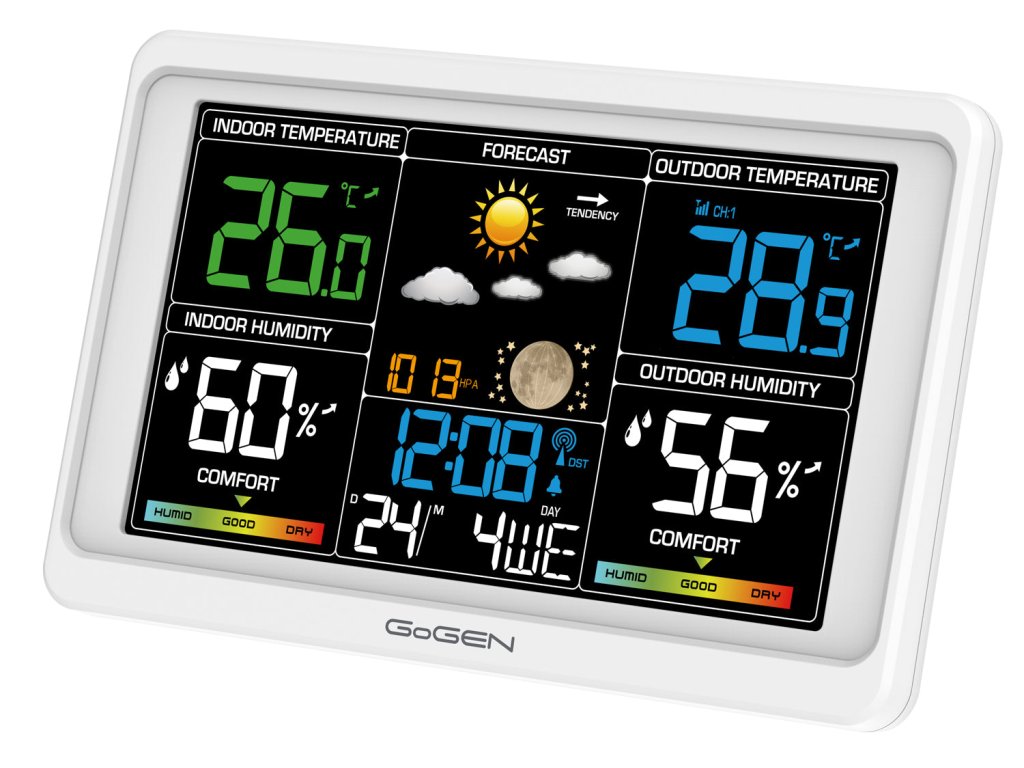 S meteostanicí GoGEN ME 3350 získáte rychlý a přesný přehled o počasí i teplotě. Tento elegantní model v bílé barvě nabízí vše, co od domácí meteorologické stanice očekáváte – měření teploty a vlhkosti, barometrický tlak, animovanou předpověď počasí i praktické funkce jako budík nebo kalendář. Díky možnosti připojit až tři externí senzory snadno sledujete podmínky nejen uvnitř, ale i na více místech venku.