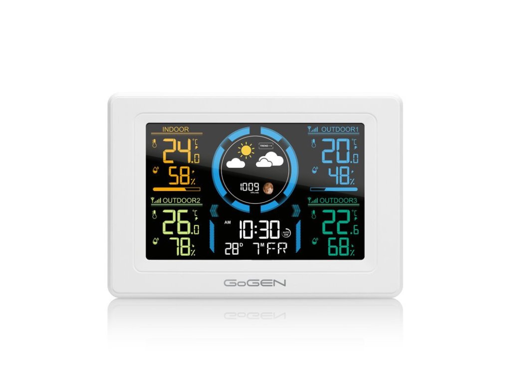 Meteorologická stanice GoGEN ME3397 je ideální pro všechny, kteří chtějí měřit teplotu a vlhkost na třech různých místech současně. Například ve skleníku, sklepě a garáži. Na přehledném barevném LCD displeji jsou v jednom čase zobrazovány hodnoty ze všech tří čidel. Máte tak okamžitý přehled o aktuálních hodnotách. Dosah bezdrátového senzoru v otevřeném prostoru je až 70 metrů. Pro venkovní naměřené hodnoty meteostanice ukládá i jejich maxima a minima.