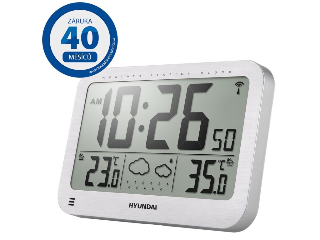 I když lze meteostanici Hyundai Ws2331 pověsit jednoduše na zeď, nejedná se pouze o nástěnné hodiny. Neméně důležitou funkcí je i animovaná předpověď počasí a zobrazení vnitřní i venkovní teploty. Venkovní teplotu lze měřit v rozsahu -20° až +50°C. U vnitřní teploty se tato škála pohybuje od 0° do 20°C.