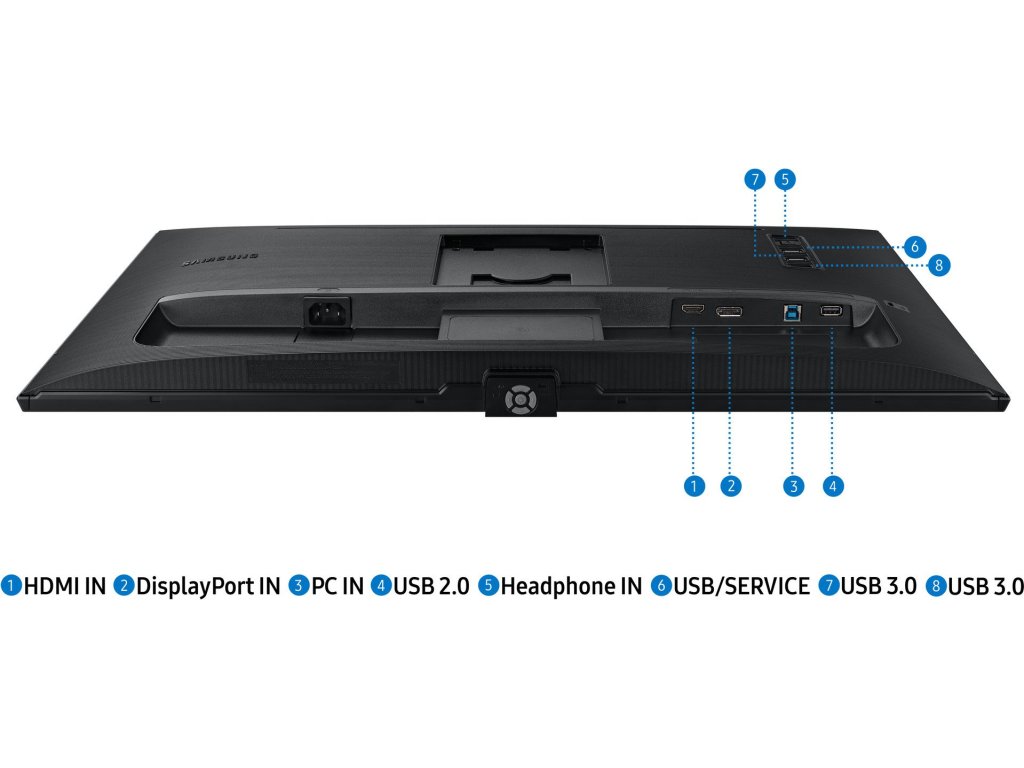 Monitor je vybaven širokou konektivitou, včetně DisplayPortu, HDMI, konektoru pro sluchátka a USB portů (1x USB 2.0, 3x USB 3.0).