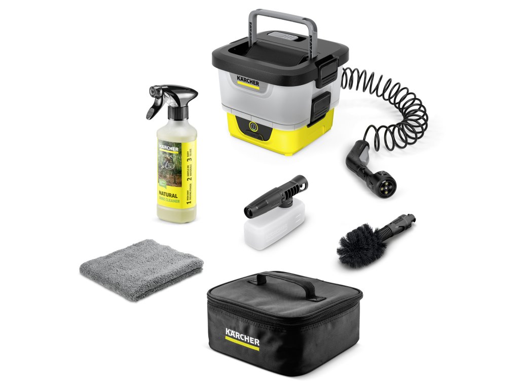 Kompaktní a přenosná: OC 4 je akumulátorová ruční tlaková myčka Kärcher, která je ideální pro všechny, kdo potřebují čisticí prostředek na cestách. Díky integrované lithium-iontové baterii a velké 8litrové nádrži na vodu můžete čistit, aniž byste byli závislí na elektrické síti nebo vodovodní přípojce. Díky technologii trysek Kärcher je čištění účinné a zároveň šetrné. Spirálová hadice o délce 2,8 m poskytuje flexibilitu a velký akční rádius. Stříkací pistole má funkci zacvaknutí pro větší pohodlí. Součástí dodávané sady Bike Kit je praktická taška na příslušenství obsahující různé doplňky, které byly speciálně optimalizovány pro čištění jízdních kol. Nízký tlak vytvářený přístrojem OC 4 je dostatečně silný, aby bez námahy odstranil z kola bláto, prach a nečistoty. Na rozdíl od tlakových myček, které pracují s vysokým tlakem, však nehrozí poškození choulostivých součástí, jako jsou ložiska, těsnění nebo náboje. Ať už po dlouhé jízdě na kole, v bikeparku nebo dokonce doma na zahradě - OC 4 je ideálním řešením pro rychlé příležitostné čištění. Zabírá minimum místa - zařízení nebo brašnu na příslušenství lze uložit do prázdné nádrže na vodu.Doplňkové parametry