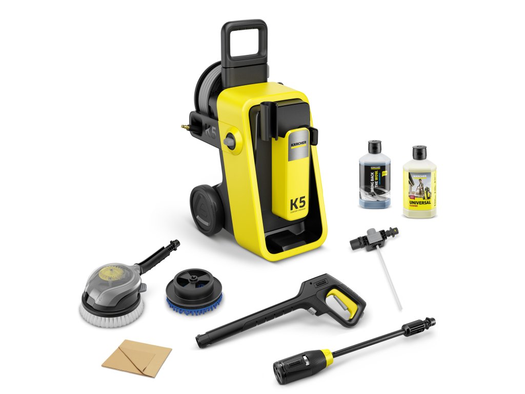 Tlaková myčka K 5 Comfort Premium Car je ideální pro odstranění středního znečištění kolem domu a auta. Zařízení je vybaveno robustním, vodou chlazeným motorem a poskytuje trvale vysoký čisticí výkon. Součástí balení je sada na čištění aut s rotačním kartáčem s vyměnitelným nástavcem, mikrovláknovým hadříkem a 1 litrem autošampónu. Integrovaný naviják hadice s flexibilní hadicí PremiumFlex umožňuje pohodlnou manipulaci a zajišťuje dobrou volnost pohybu. Spoušťová pistole G 180 Q COMFORT!Hold výrazně snižuje tlak potřebný k držení a zajišťuje tak čištění bez únavy. Systém Quick Connect také umožňuje rychlé připojení a odpojení vysokotlaké hadice. 4v1 Multi Jet stříkací tryska přepíná mezi 4 stříkacími vzory otočením hlavy stříkací trysky, čímž se přizpůsobuje různým úklidovým úkolům. Koncept 2v1 čisticího prostředku zajišťuje pohodlí a perfektní aplikaci čisticího prostředku v závislosti na použití. Kabely a příslušenství lze kompaktně uložit na zařízení. Podporu poskytuje aplikace Kärcher Home & Garden s integrovaným poradcem pro použití a užitečnými tipy a triky.Doplňkové parametry