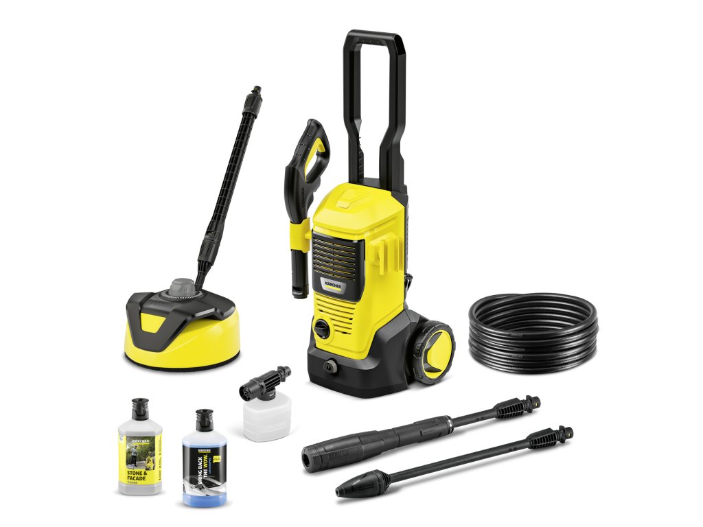 Tlaková myčka K 5 FJ Home je ideálním pomocníkem pro pravidelné čištění středně silných nečistot, například vozidel a středně velkých ploch v okolí domu. Mezi funkce patří spouštěcí pistole, 8metrová vysokotlaká hadice, postřikovací tryska Vario Power, Dirt Blaster s rotujícím bodovým paprskem pro odstraňování odolných nečistot a spolehlivý vodní filtr, který chrání čerpadlo před malými částečkami nečistot. Sada Home Kit zaručuje čištění větších ploch kolem domu bez rozstřiku a dodává se s čističem povrchů T 5 a 1 l čističe kamene a fasády. Součástí je také pěnová tryska a 1 l autošamponu pro maximální výkon při rozpouštění nečistot. Veškeré dodávané příslušenství lze uložit do samotného přístroje.Doplňkové parametry