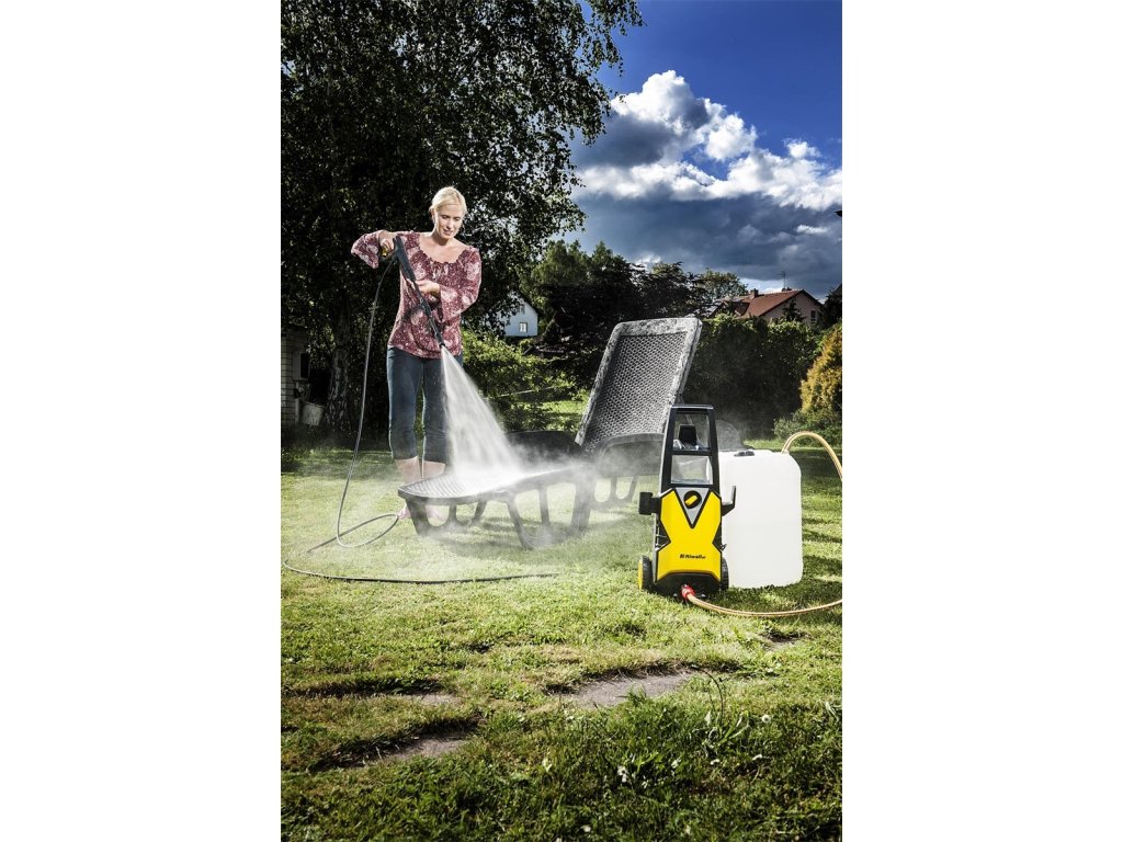 REPW 120 SET - elektrická tlaková myčka 120 bar Výbava: Tlaková pistole s rychlospojkou Nástavec s otočnou nastavitelnou tryskou Nástavec s rotační turbo tryskou Tlaková hadice 5 m Elektrický kabel 5 m Průhledný vodní filtr Nádržka 0,5 l na saponát s tryskou Čerpadlo s funkcí samonasávání Pojezdová kola Výhody: cenově dostupná a spolehlivá myčka je ideálním řešením pro čištění běžných nečistot kolem domu či dílny, kol, zahradního nábytku, plotů, terasy, motorových vozidel, zahradní techniky apod. myčka je vybavena unikátním kovovým čerpadlem se samonasávací funkcí, což znamená, že lze myčku připojit nejenom na zdroj tlakové vody (kohoutek), ale lze nasávat vodu i z nádrží, kbelíku, sudu nebo vodních toků systém auto stop při uvolnění spínače ihned vypíná motor – méně hlučnosti a úspora energie průhledný vodní filtr brání vniknutí nečistot do čerpadla a snadno se kontroluje pouhým pohledem bez nutnosti demontáže nastavitelná tryska vytváří plochý paprsek vody, který se dá pouhým otáčením trysky dle potřeby rozšiřovat turbo tryska vytváří silný rotující paprsek vody, díky kterému se dají odstranit i velmi odolné nečistoty moderní design a konstrukce splňující všechny požadavky na dobrou ergonomii a snadnou obsluhu úložné prostory pro tlakovou pistoli s tryskou, hák na uložení hadice nízká hmotnost, madlo a pojezdová kola pro snadnou manipulaci možnost připojení bohatého příslušenství Podmínky prodloužené záruky naleznete zde. Případné bezpečnostní pokyny, výstrahy a upozornění jsou součástí návodu k obsluze, který je k dispozici v sekci KE STAŽENÍ. Kontaktní údaje výrobce / dovozce / zplnomocněného zástupce výrobce v EU: GARLAND distributor, s.r.o. Šturmova 1307, 50601 Jičín, Czech Republic email: garland@garland.czPři platbě penězi je možné dostat zajímavou nabídku neboli akční cenu a tu Vám rádi uděláme když napíšete na info@megabike-cyklo.cz