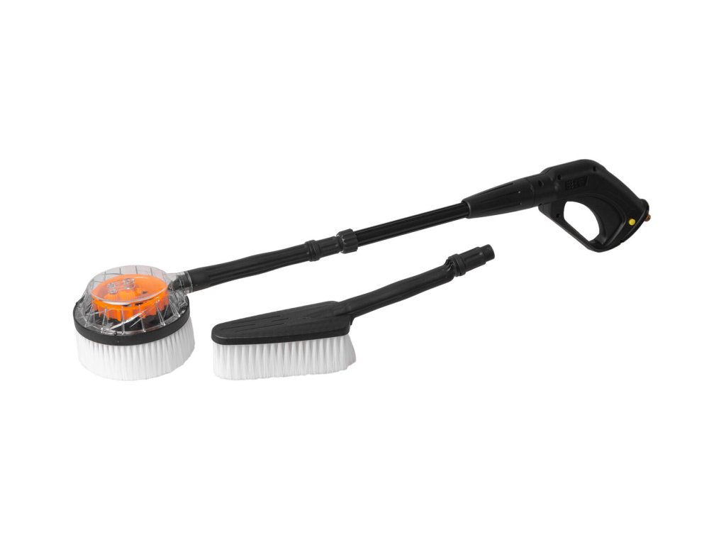 Hledáte multifunkční vysokotlakou myčku, která se nezalekne žádné špíny? Naše výkonná vapka s 2400W komutátorovým motorem se stane vaší pravou rukou pro ty nejnáročnější úkoly - od mytí znečištěných teras, zahradního nabýtku až po mytí automobilu nebo fasád. Stroj navíc disponuje funkcí samonasávání, což mu umožňuje použití i mimo vodovodní řád. Stačí mít k dispozici nádrž, sud nebo jakoukoli jinou nádobu s čistou vodou. Proč si vapku zamilujete? - Výkonný komutátorový motor (2400 W) s hliníkovým axiálním čerpadlem a měděným vinutím -zaručuje vysoký výkon, maximální spolehlivost a dlouhou životnost - Tlak až 180 bar- zvládne i tu nejzašlejší špínu - Samonasávání- ideální do míst bez přímého napojení na vodovod - Snadná manipulace -díky pojezdovým kolům a ergonomickému designu - Integrovaná nádržka na čistící prostředek- pro dokonalé předmytí - Bohaté příslušenství pro každou příležitost- součástí balení je sada trysek včetně turbo trysky, mycí kartáč a podlahový kartáč - Praktický naviják - pro ještě jednodušší práci s tlakovou hadici Součásti balení: - čistič ploch - tlaková pistole - Trysky - turbo, paprsek, šamponovací, rozprašovací - Mycí kartáč - Rotační kartáč - 6 m hadice na čištění potrubí - Filtr pro připojení vody z nádrže !TISKOVÁ CHYBA! - 6. a 8. pozice prohozena. (vstup tlakové vody vzadu), (výstup tlakové vody vpředu). Vyčistěte vše bez kompromisů! Nový inovovaný vysokotlaký čistič je tu, aby vám usnadnil život a dodal profesionální výsledky!Při platbě penězi je možné dostat zajímavou nabídku neboli akční cenu a tu Vám rádi uděláme když napíšete na info@megabike-cyklo.cz