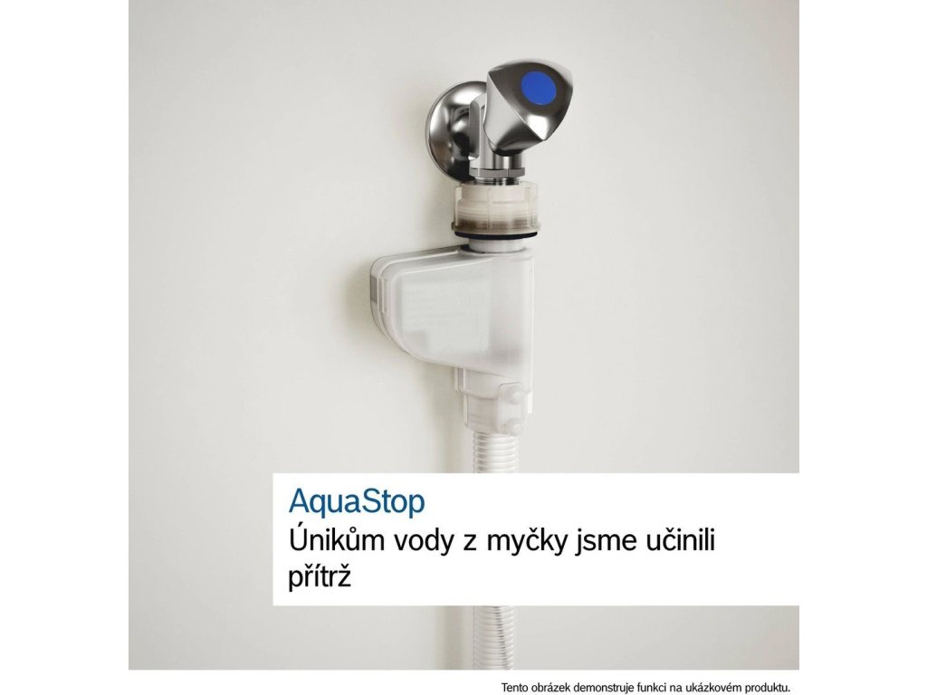 Ochraňte svou domácnost proti vytopení! Díky systému AquaStop máte záruku po celou dobu životnosti spotřebiče. A jak AquaStop funguje? Jakmile senzor detekuje únik vody, myčka automaticky zastaví provoz a odčerpá vodu hadicí s dvojitou stěnou. Váš domov je od případné havárie ochráněn!