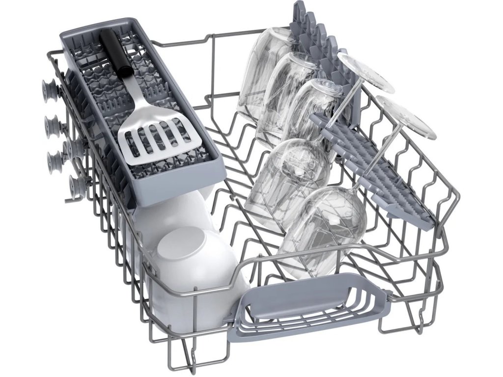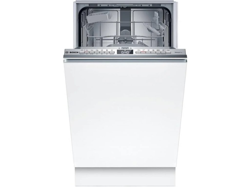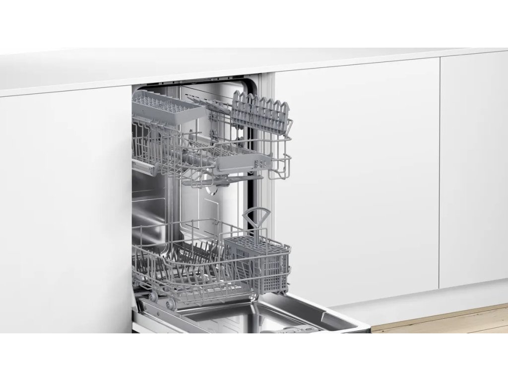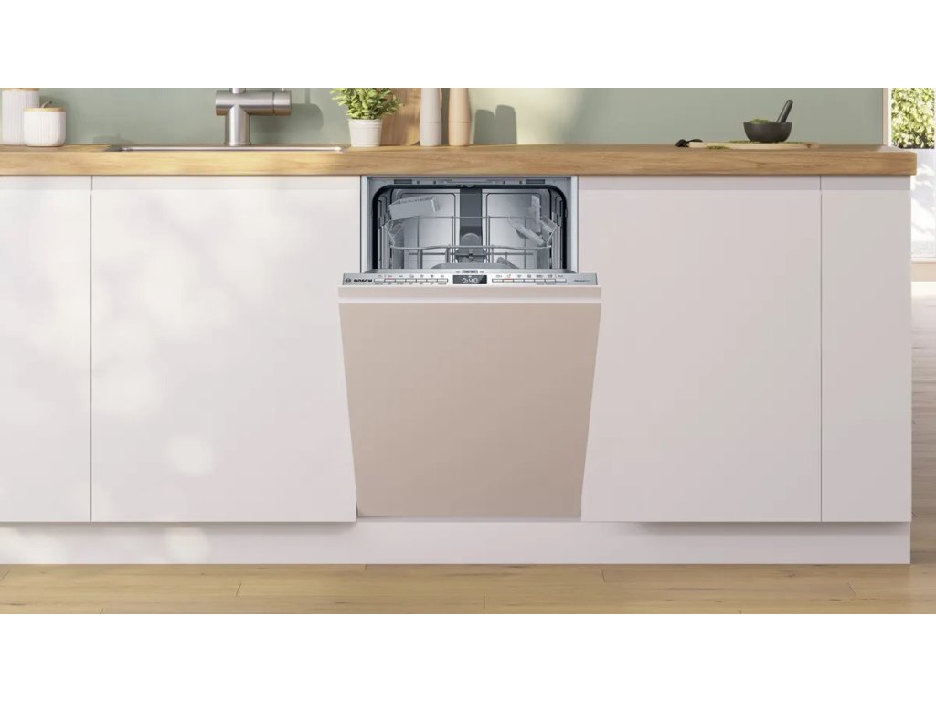 Bosch SPV4HKX10EVolně stojící myčka Bosch SPV4HKX10E s šířkou 45 cm poslouží i v menších domácnostech. Silný a tichý motor EcoSilence Drive pomůže umýt 10 jídelních sad nádobí. Bezpečně vše naskládáte do flexibilních košů Vario a koši na příbory. Pokud spěcháte, urychlete mytí díky SpeedPerfect+. Nádobí se zaschlými zbytky bude dokonale čisté při využití funkce Intensive Zone. O průběhu mytí jste informování světelným paprskem promítaným na podlahu.