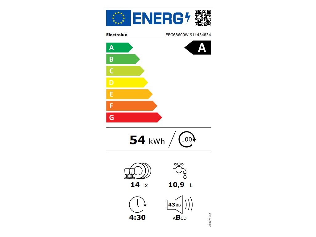| Vážená spotřeba energie na 100 cyklů [kWh]: | 54 |