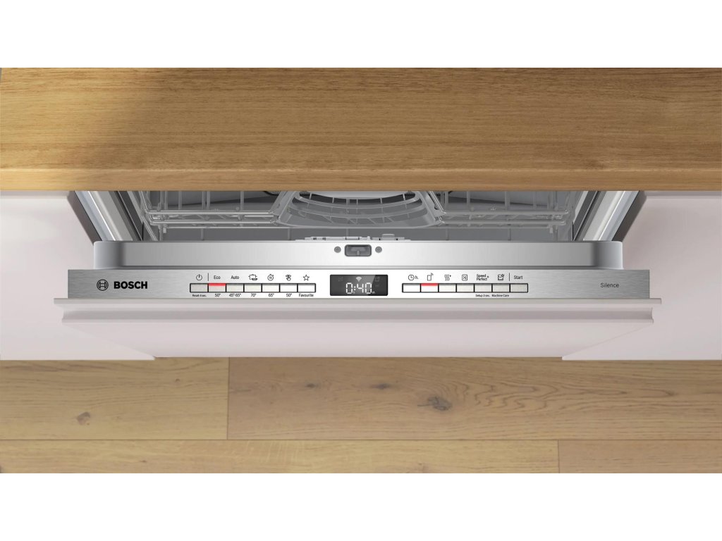 Praktickou funkcí, kterou jistě oceníte, je funkce odloženého startu , takže si ji můžete nastavit tak, aby se spustil i během vaší nepřítomnosti. Vestavná myčka nádobí BOSCH SMV4HVX11E řady 4 vám ukáže, kdy cyklus mytí skončí. Tento model je také vybaven tepelným výměníkem, který využívá teplo generované z mycího programu k předehřátí vody pro další mytí. Funkce Quick PowerWash umožňuje umýt nádobí za méně než hodinu. Speciální senzor snímá množství nádobí uvnitř a upravuje spotřebu vody. Za zmínku také stojí bezpečnostní systém Aqua Stop, který chrání váš dům nebo byt před zaplavením v případě poruchy. Košík na příbory umožňuje snadné mytí příborů. Jeho hlavní výhodou je umístění mimo koš na nádobí, což šetří spoustu místa.