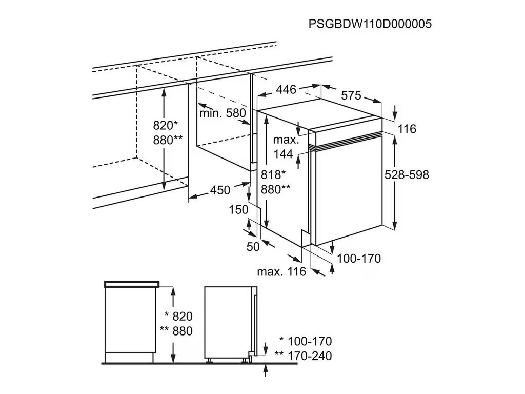 Kapacita mytí: 9: Podle normy IEC pro sadu nádobí. Jednou sadou nádobí je podle této normy: talíř, hluboký talíř, dezertní talíř, sklenice, čajový šálek s podšálkem, nůž, vidlička, polévková lžíce, dezertní lžíce a lžička.