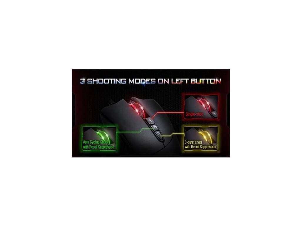 LAGLESS SHOTING technology - zpoždění při střelbě pouze 1ms po zmáčknutí příslušného tlačítka proti 18ms u běžné herní myši.