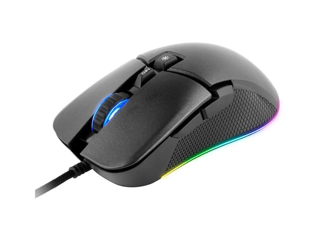 Herní myš C-TECH Dawn Vás na první pohled okouzlí svým elegantním tvarem a RGB podsvětlením. Myš disponuje optickým snímačem Sunplus 199 s maximálním rozlišením 6400DPI, které je možno pomocí tlačítka DPI měnit v 5 úrovních. Myš je vybavena 5 tlačítky, které vám poskytnou dokonalou kontrolu nad hrou. Další dvě tlačítka jsou pro změnu DPI a volbu RGB režimu podsvětlení. 5 RGB módy s 16.8 miliony barev oživí váš stůl nejen při hraní her, ale i při kancelářské práci. Myš C-tech Dawn je díky své ergonomii vhodná pro praváky a k počítači ji připojíte 1,5m opleteným kabelem s USB konektorem.Pro větší variabilitu lze na adrese https://shop.c-line.cz/files/C-tech_GM-24L.exe stáhnout přídavný software.