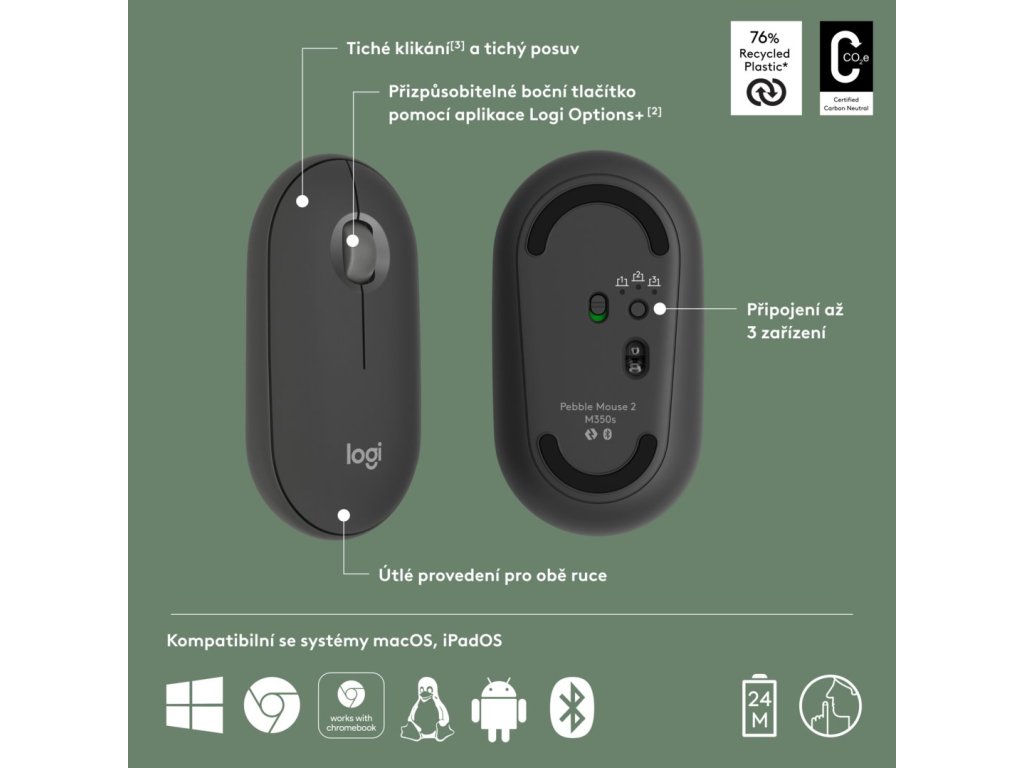 Logitech Wireless Pebble mouse 2, M350s, grafitová Nevíte kde uplatnit Benefity obecně, zeptej se info@megabike-cyklo.cz