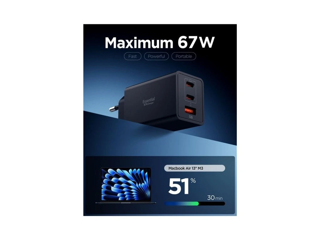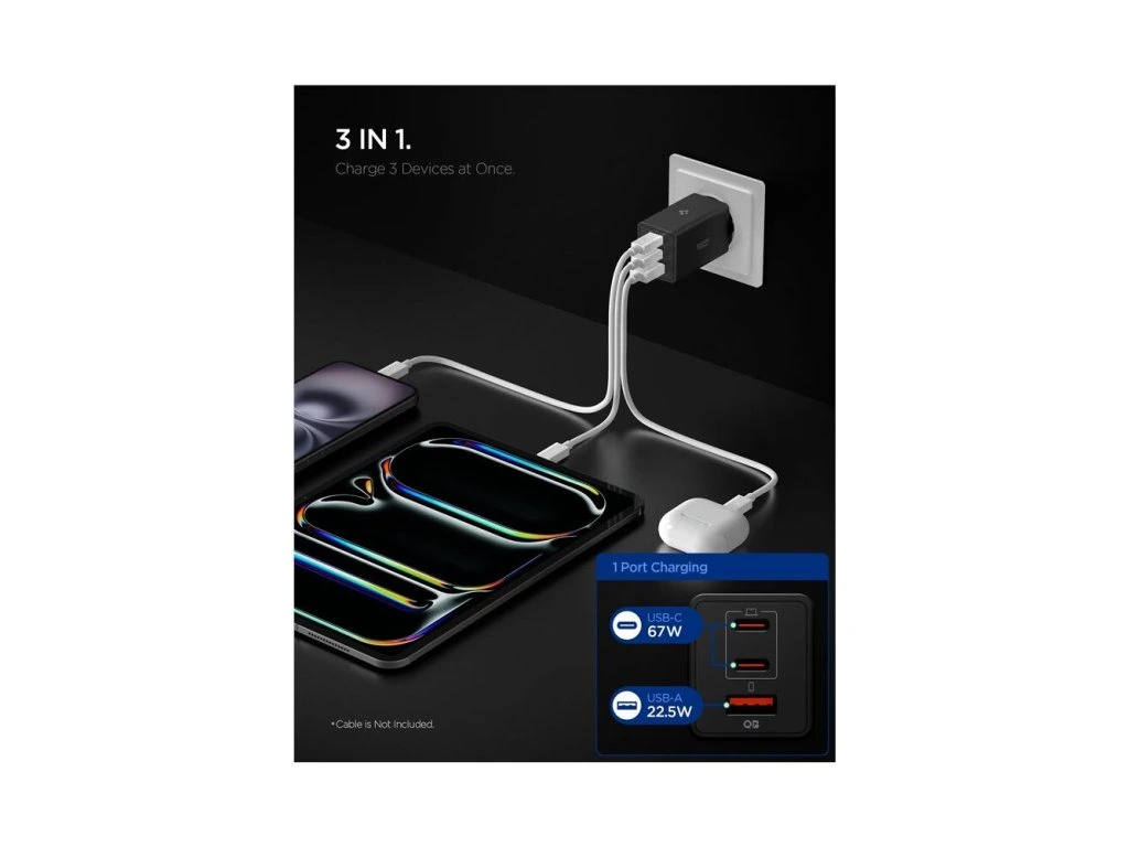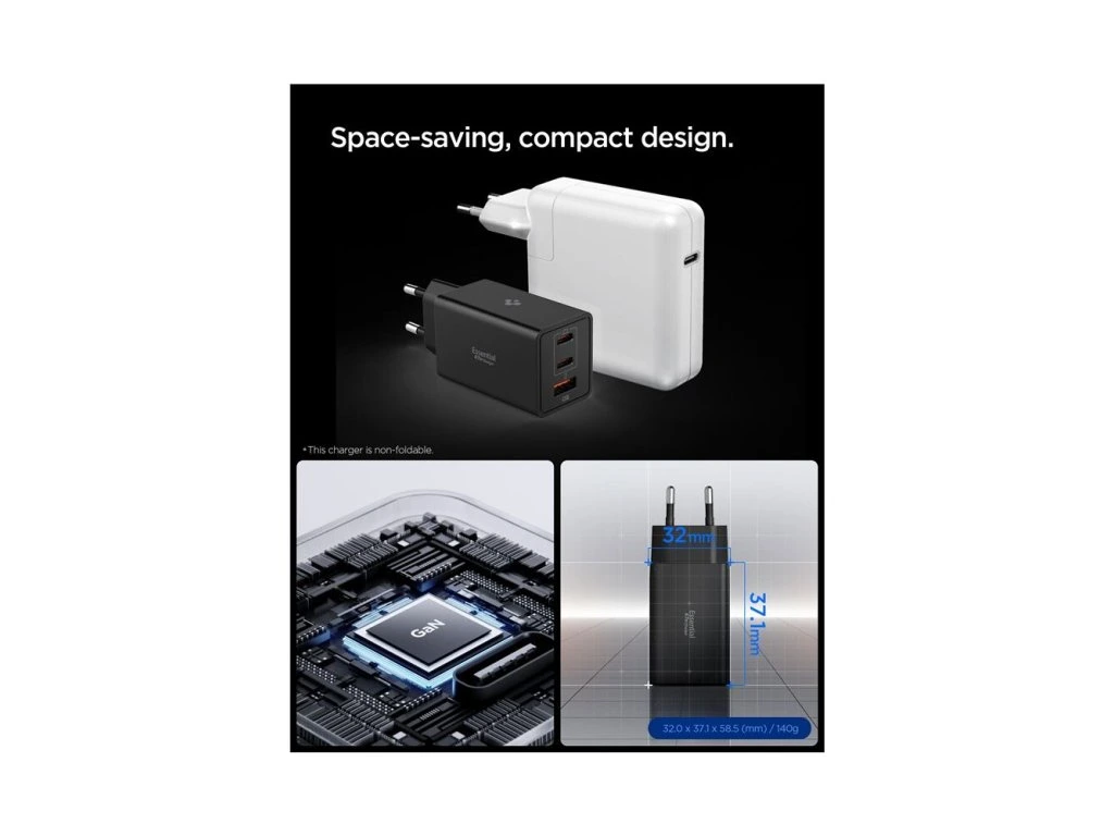 Spigen Essential 67W USB-C/USB-A nabíječka (EE673EU) černá Nevíte kde uplatnit Benefity obecně, zeptej se info@megabike-cyklo.cz