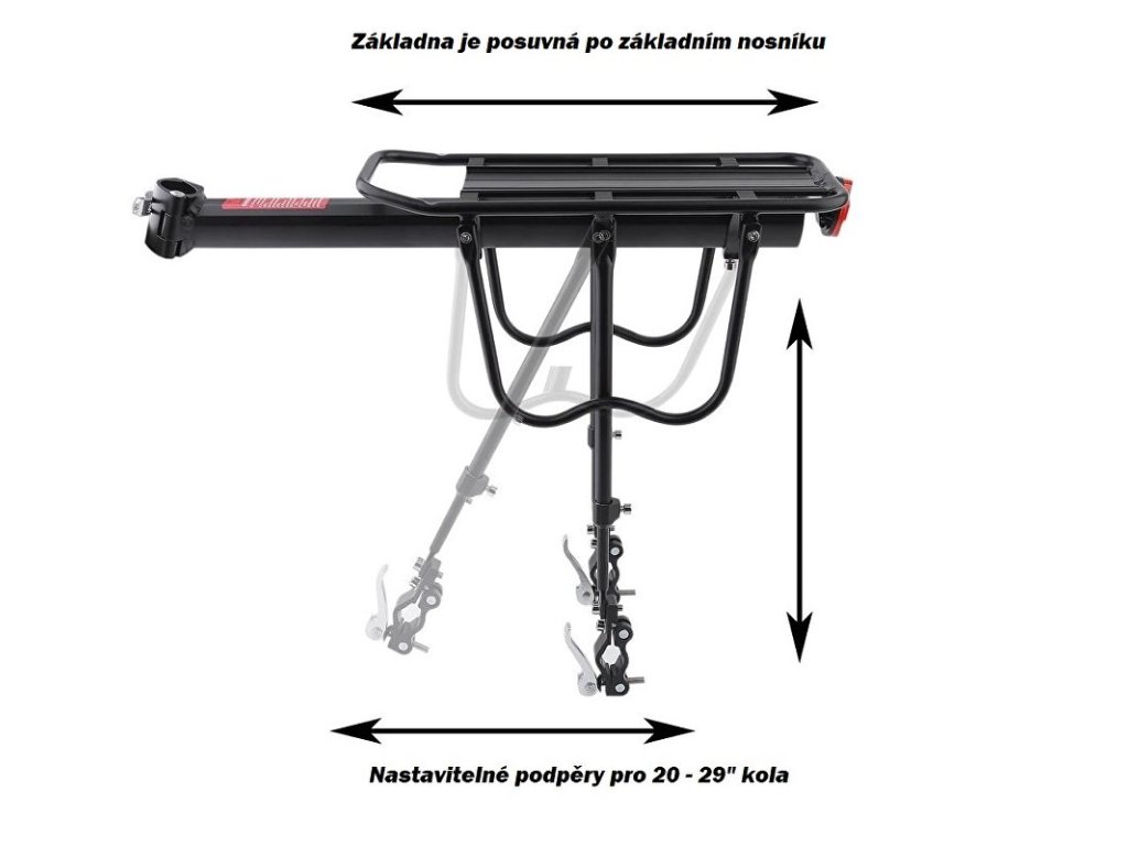 - univerzální nosič pro lehkou turistiku, i pro větší zatížení s přidanými vzpěrami až 27 kg