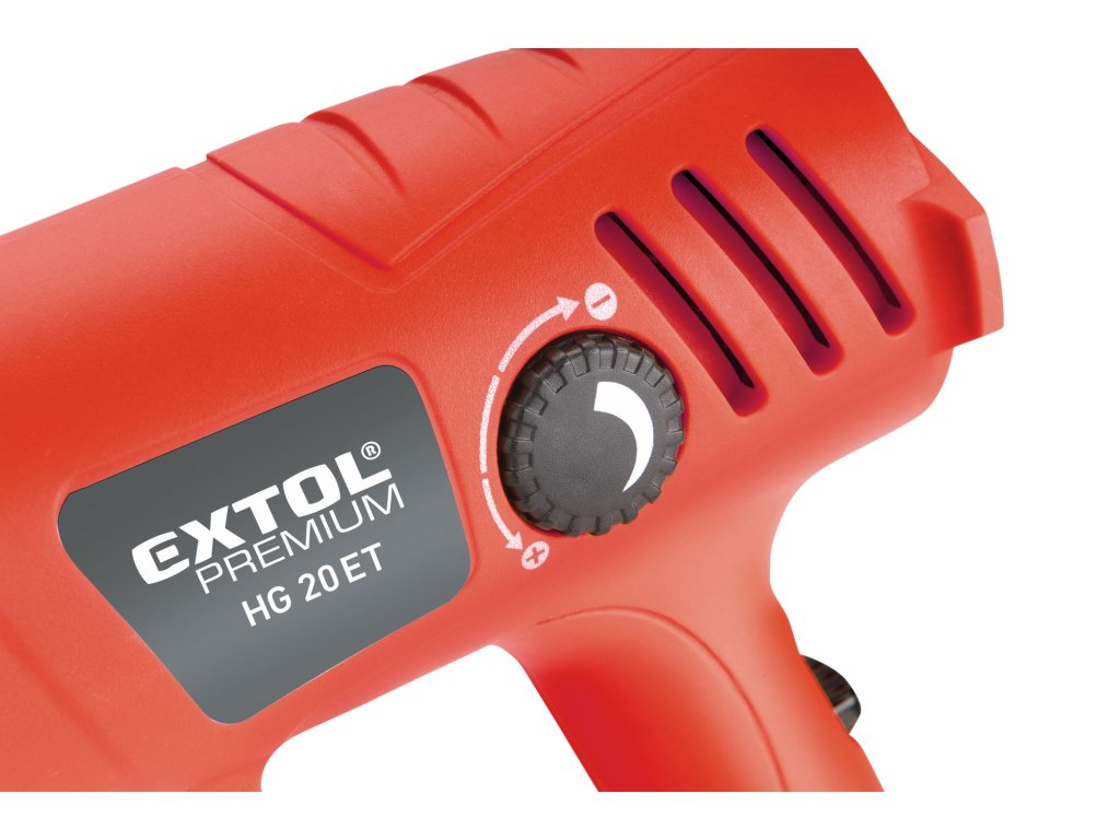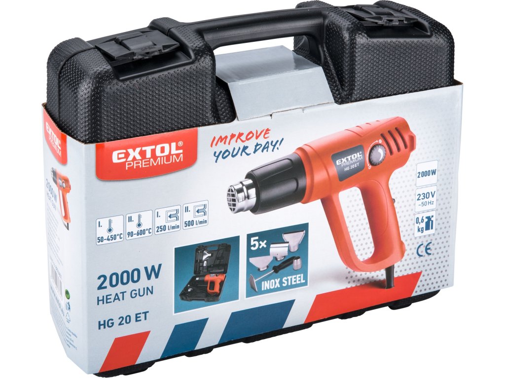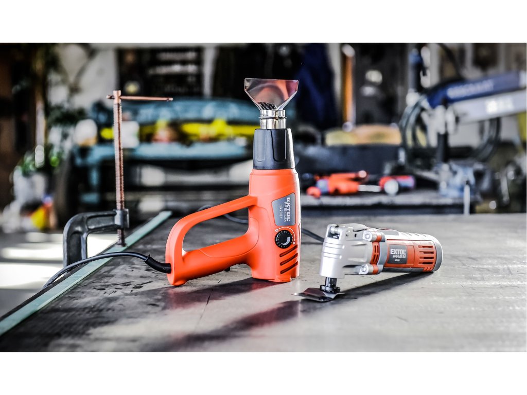 Horkovzdušná pistole je určena k nahřívání povrchů za účelem odstranění nátěrů (barev, laků), sušení čerstvě nanesených nátěrů, tvarování a spojování umělých hmot (např. trubek) a asfaltových krytin, uvolňování lepených spojů, pájení a také k rozmrazování zmrzlé vody v potrubí. Pistole umožňuje nastavit dva stupně lišící se teplotním rozsahem a průtokem vzduchu. Díky regulátoru teploty lze měnit teplotu v rámci nastaveného stupně.- plynulá regulace teploty