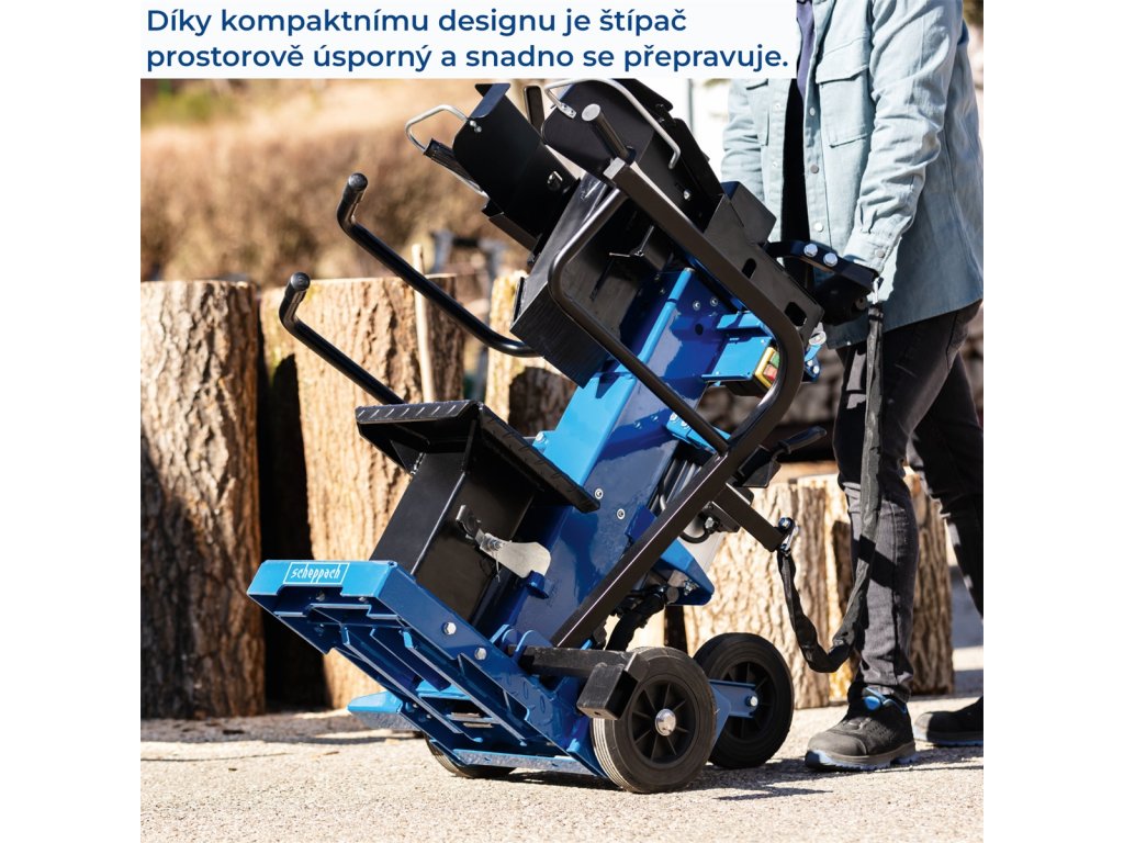Scheppach přichází na trh jako první s úplně novou generací výkonných vertikálních štípačů dřeva. Compact 15T je vrcholným modelem, který nabídne uživateli spoustu komfortní i bezpečnostní výbavy a díky neuvěřitelné štípací síle 15 tun, si snadno poradí opravdu se všemi druhy tvrdých i měkkých dřevin. Vše je navíc zakomponováno ve velmi kompaktní konstrukci, která klade minimální nároky na skladovací prostor - výška stroje v nejnižší poloze je jen lehce přes 1 metr. Stroj je rovněž mnohem stabilnější a lépe ovladatelný než vertikální štípače běžné konstrukce. Nejmodernější motor postavený na principu bezuhlíkové technologie má mnohem vyšší účinnost než běžné elektromotory, šetří elektrickou energii a je téměř bezúdržbový. Robustní podvozek se dvěma koly umožňuje pohodlné přemísťování stroje. Celá konstrukce štípače je vyrobena z jakostní oceli ošetřené kvalitním práškovým nátěrem a celkově je stroj navržen s ohledem na co nejdelší životnost. Tato generace štípačů také jako první ve své kategorii splňuje, díky mnoha patentovaným řešením, nejnovější evropské bezpečnostní předpisy a poskytuje tak nejvyšší možnou míru ochrany Vašeho zdraví. To potvrzuje i fakt, že stroj splňuje velmi přísnou německou normu GS. Vybavení stroje rychlý automatický návrat pístu VARIO systém bezpečnostní obouruční ovládání nízká základná s rozšířením pro dokonalou stabilitu přídavný výkyvný stolek pro štípání polen různé délky v různých výškách bezpečnostní ramena chránící poleno proti vypadnutí integrovaný zvedák polen pro snadnou manipulaci s těžkými kmeny mohutný rozšiřovací štípací klín, který si poradí i s poleny o průměru až 450 mm VARIO systém Štípač Compact 15T je vybavený systémem VARIO, který umožňuje nastavení dráhy chodu pístu dle délky štípaných polen. To znamená, že nemusíte zbytečně čekat, až se píst vrátí do výchozí polohy, díky čemuž zvládnete za jednotku času mnohem více štípacích cyklů než u srovnatelných strojů. Práci tak budete mít hotovou rychleji a zároveň ušetříte i nějakou tu elektrickou energii. Servisní zázemí Scheppach, jakožto největšího výrobce štípačů v Evropě, také poskytuje zákaznikům širokou servisní síť, jejíž nedílnou součástí je i naše společnost. Využijte prodloužené záruky Bližší informace o záručních podmínkách naleznete zde. Alternativy V případě, že hledáte o něco levnější stroj, doporučujeme obhlédnout štípače Compact 10T nebo Compact 8T. Případné bezpečnostní pokyny, výstrahy a upozornění jsou součástí návodu k obsluze, který je k dispozici v sekci KE STAŽENÍ. Kontaktní údaje výrobce / dovozce / zplnomocněného zástupce výrobce v EU: Scheppach GmbH Günzburger Str. 69, 89335 Ichenhausen, Germany email: service@scheppach.comPři platbě penězi je možné dostat zajímavou nabídku neboli akční cenu a tu Vám rádi uděláme když napíšete na info@megabike-cyklo.cz