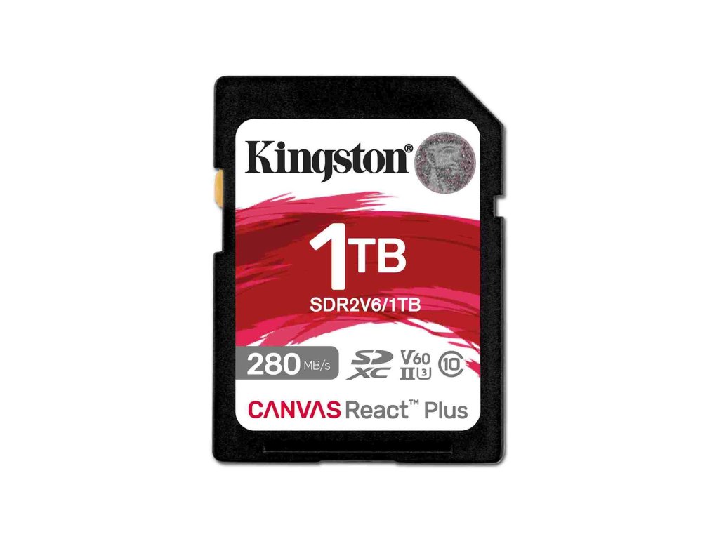 Kingston SDXC Karta Canvas React Plus SD karta Kingston Canvas React Plus V60 poskytuje působivý výkon pro kamery UHS-II pro zachycení 4K videa.Disponuje rychlostními třídami U3 a V60 s přenosovými rychlostmi až 280 MB/s a kapacitou 1TB.
