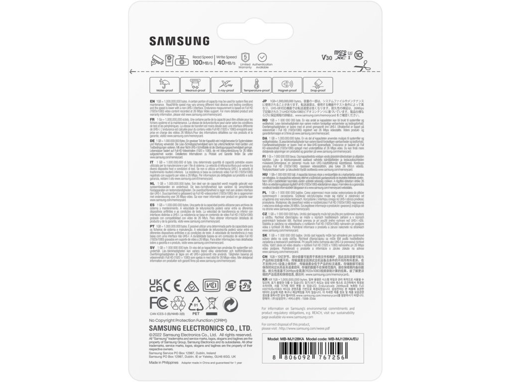 Nová microSD karta určená do autokamer, dohledových systému a IP kamer. Karta je navržena do zařízení s nepřetržitým nahráváním. Rychlost čtení až 130MB/s. Kapacita 128GB. SD adaptér v balení.Doplňkové parametry