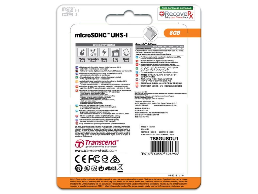Ultra rychlá SD karta specifikace UHS-I (Ultra High Speed Class 1). V provedení micro s adaptérem na standardní velikost- plně kompatibilní se standardem SD 3.01
