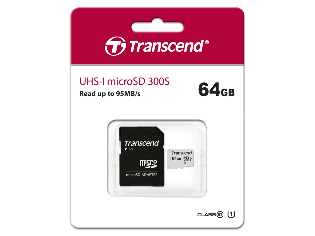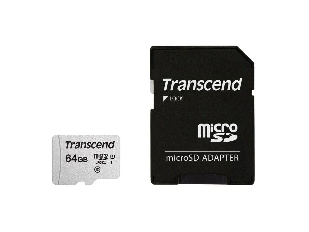 Transcend 64GB microSDXC 300S UHS-I U1 (Class 10) paměťová karta (s adaptérem), až 100/20 MB/sDoplňkové parametry