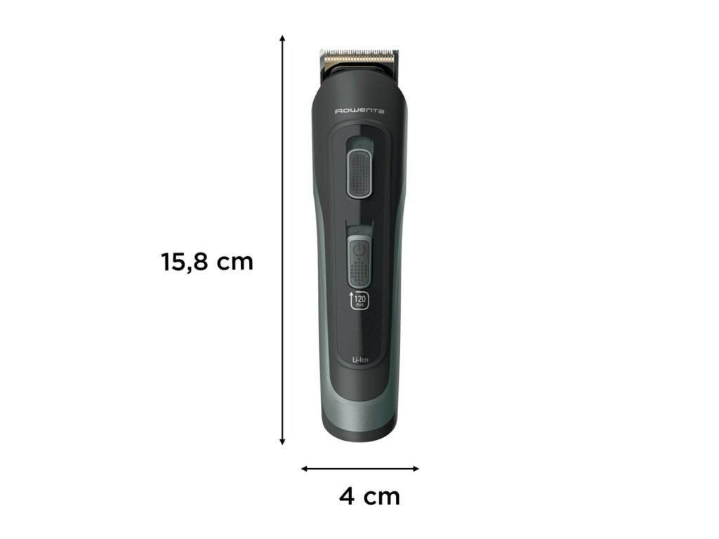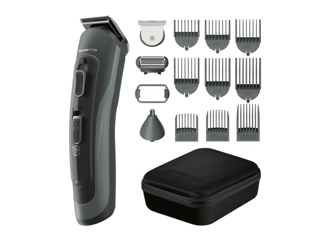Tento špičkový zastřihovač od Rowenta přijde vhod každému muži, který rád pečuje o svou vnější krásu a má rád multifunkční nástroje. Model totiž disponuje hned 15 funkcemi v jednom přístroji. Zastřihovač Rowenta Selectium 15v1 TN9444E0 je vybaven kvalitními čepelemi z nerezové oceli s titanovým povrchem, které slibují úctyhodnou životnost až 15 let. Díky použití samoostřící technologie zaručuje přístroj dokonale prezicní a dlouhodobou funkčnost.V balení naleznete 9 různých hřebenových nástavců v délce od 0,5 do 18 mm s přesností nastavení na 0,5 mm. Potěší vás rovněž kompaktní design a ergonomické provedení i to, že zastřihovač můžete použít nejen s kabelem, ale také bez něj. Baterie vám poskytne až 120 minut nepřetržitého výkonu a funkce rychlonabíjení pak doplní baterii za 90 minut.
