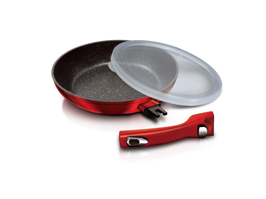 Univerzální středně velká pánev značky Berlingerhaus s nepřilnavým povrchem s mramorovým designem je neocenitelný pomocník do každé kuchyně. Pánev se pyšní praktickou odnímatelnou rukojetí v atraktivním designu Burgundy Metallic. Pánev je potažena 3vrstvým mramorovým povrchem, který je charakteristický svou dokonalou nepřilnavostí, připravované potraviny se nepřipalují a díky tomu se pánev velmi jednoduše čistí. Zároveň je vhodná pro zdravé vaření s minimem tuku nebo oleje, v závislosti na použitých surovinách klidně i bez jediné kapky tuku.